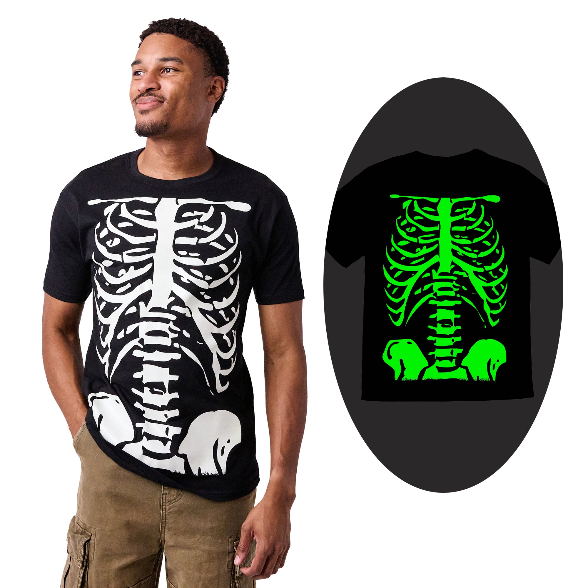 Skeleton Halloween Costume Men's Black Short Sleeve Glow In The Dark Tee