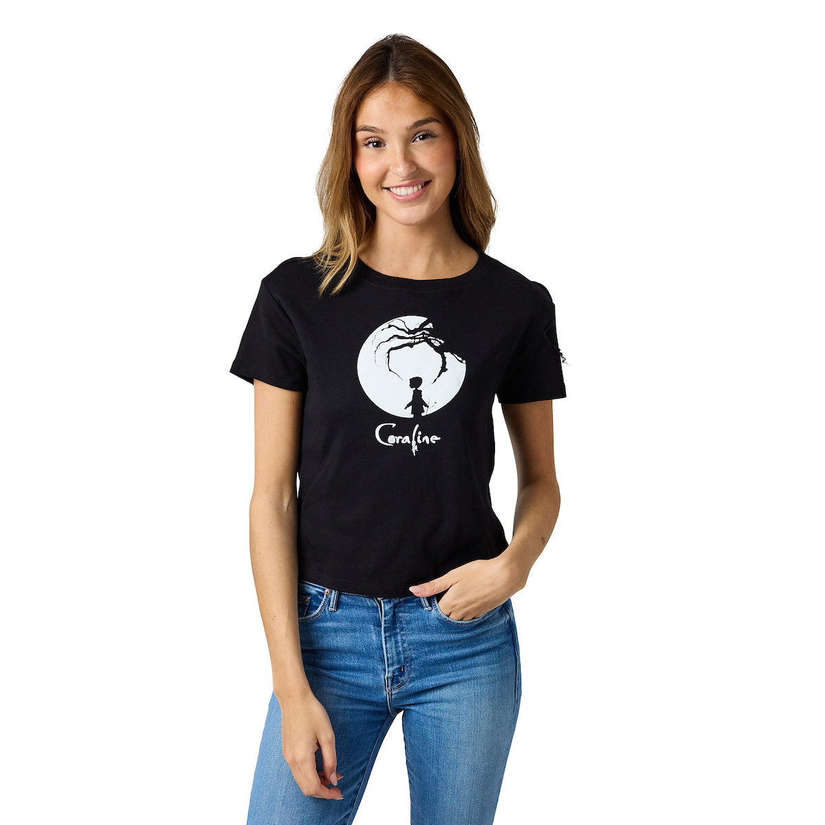 Coraline Full Moon Silhouette Women's Black Crew Neck Short Sleeve Baby Tee