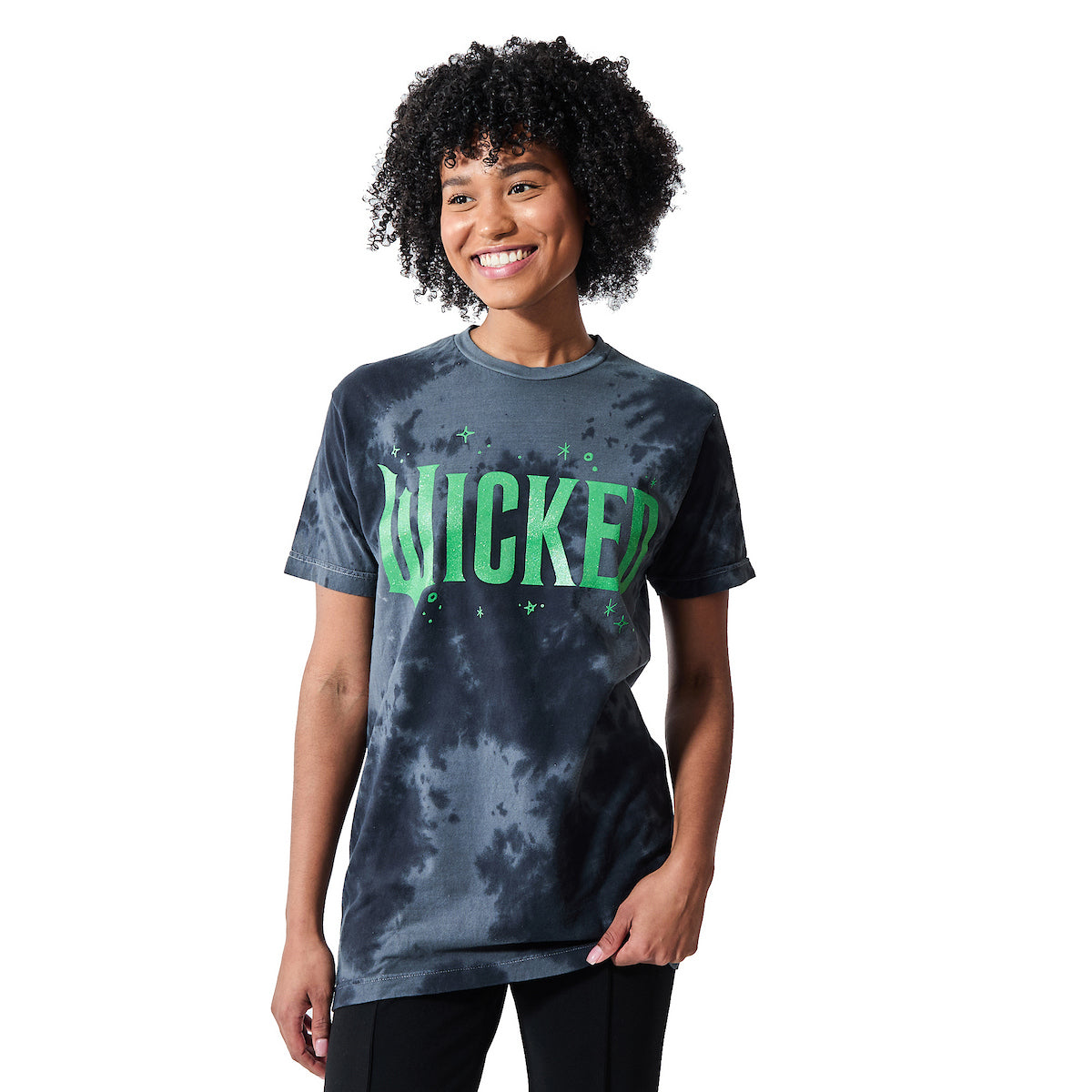 Wicked Green Glitter Print Movie Logo Men's Black Cloud Wash Crew Neck Short Sleeve T-shirt