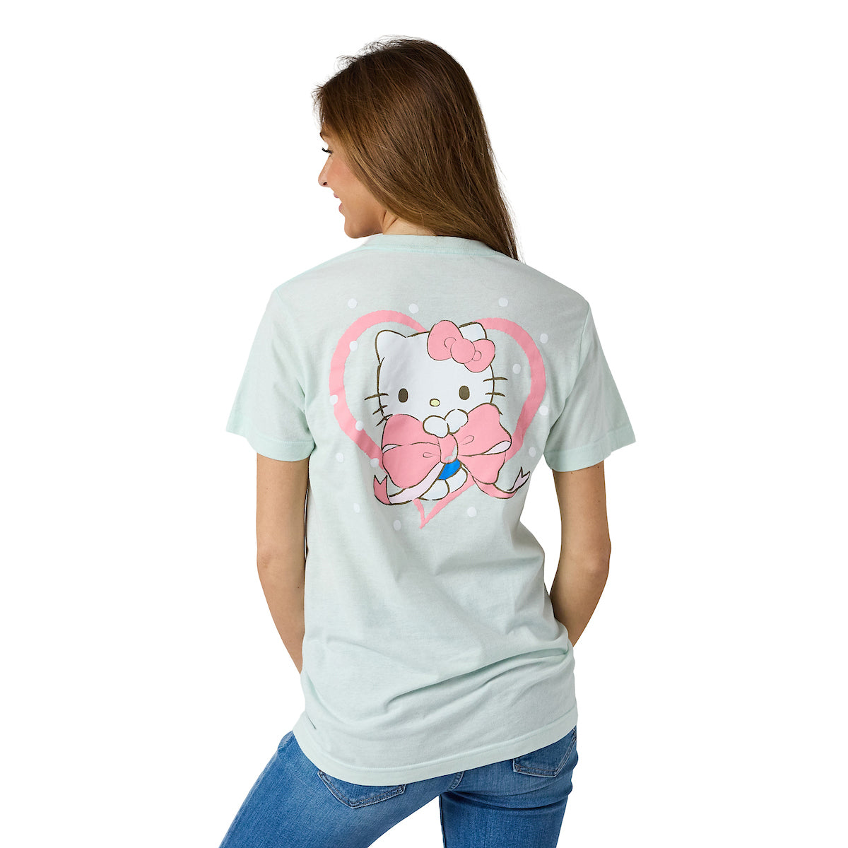 Hello Kitty Puff Print Character With Bow & Heart Women's Light Green Crew Neck Short Sleeve T-shirt