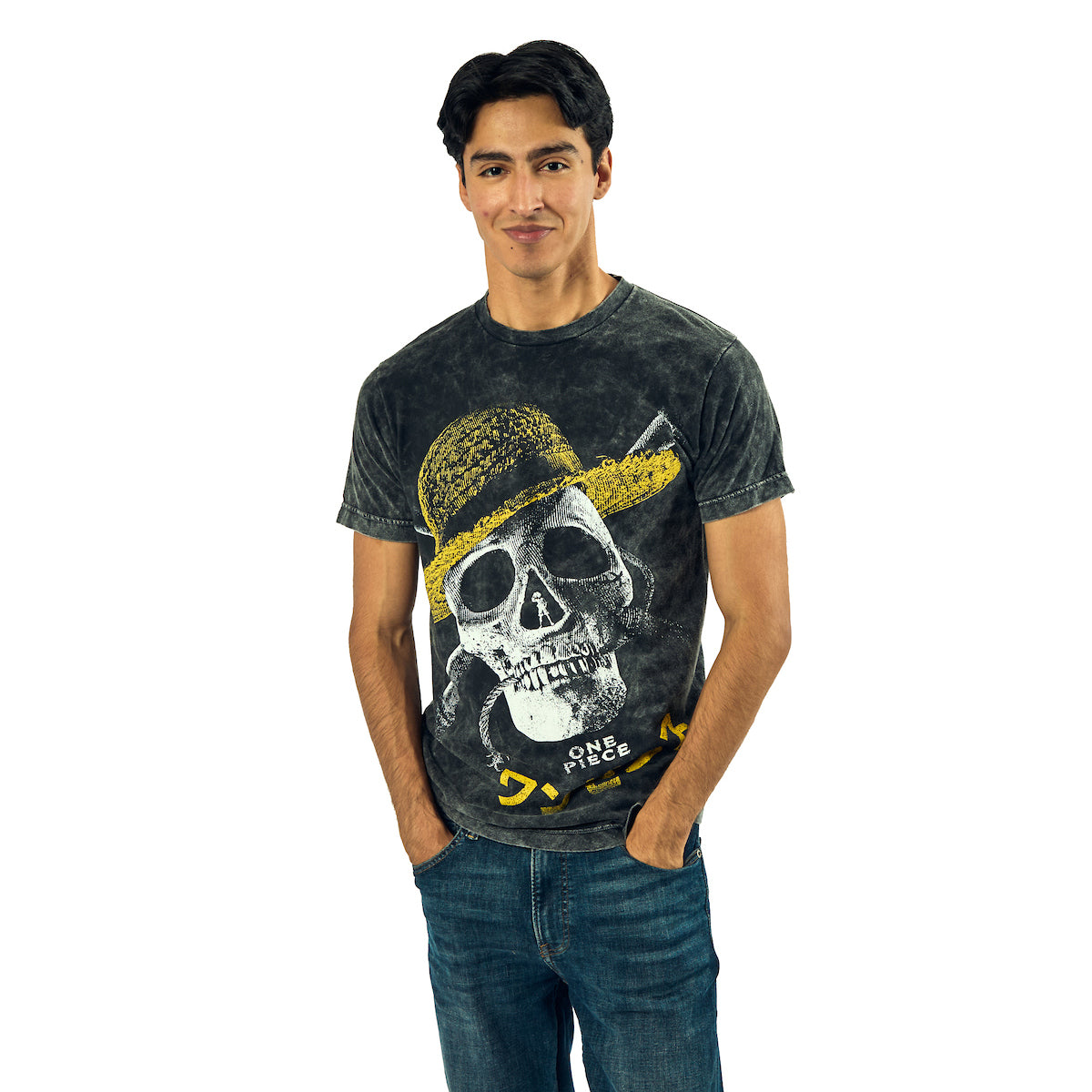 One Piece Live Action Oversized Straw Hat Skull & Crossbones Crew Neck Short Sleeve Men's Black T-shirt