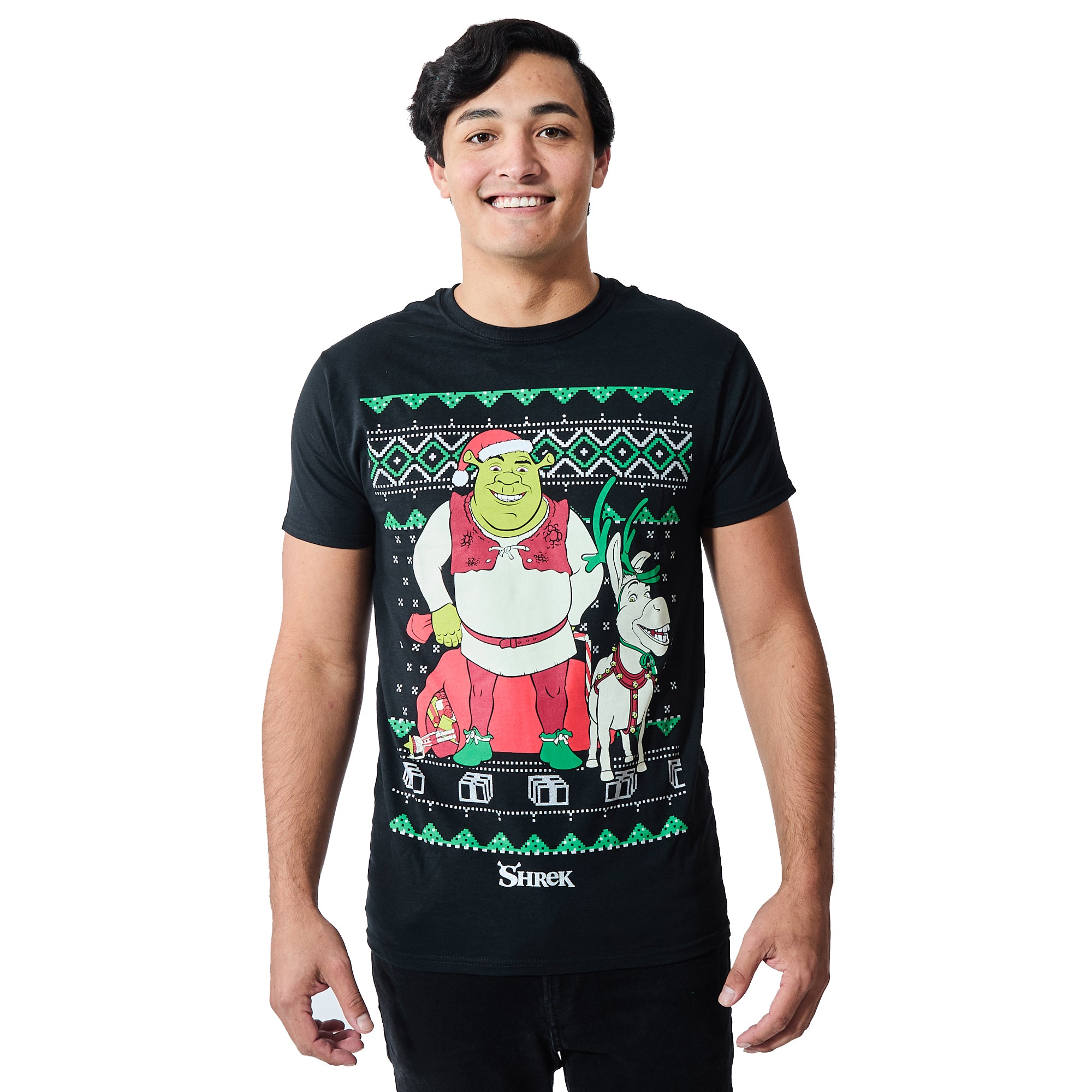 Shrek & Donkey Holiday Sweater Pattern Men's Charcoal Crew Neck Short Sleeve T-shirt