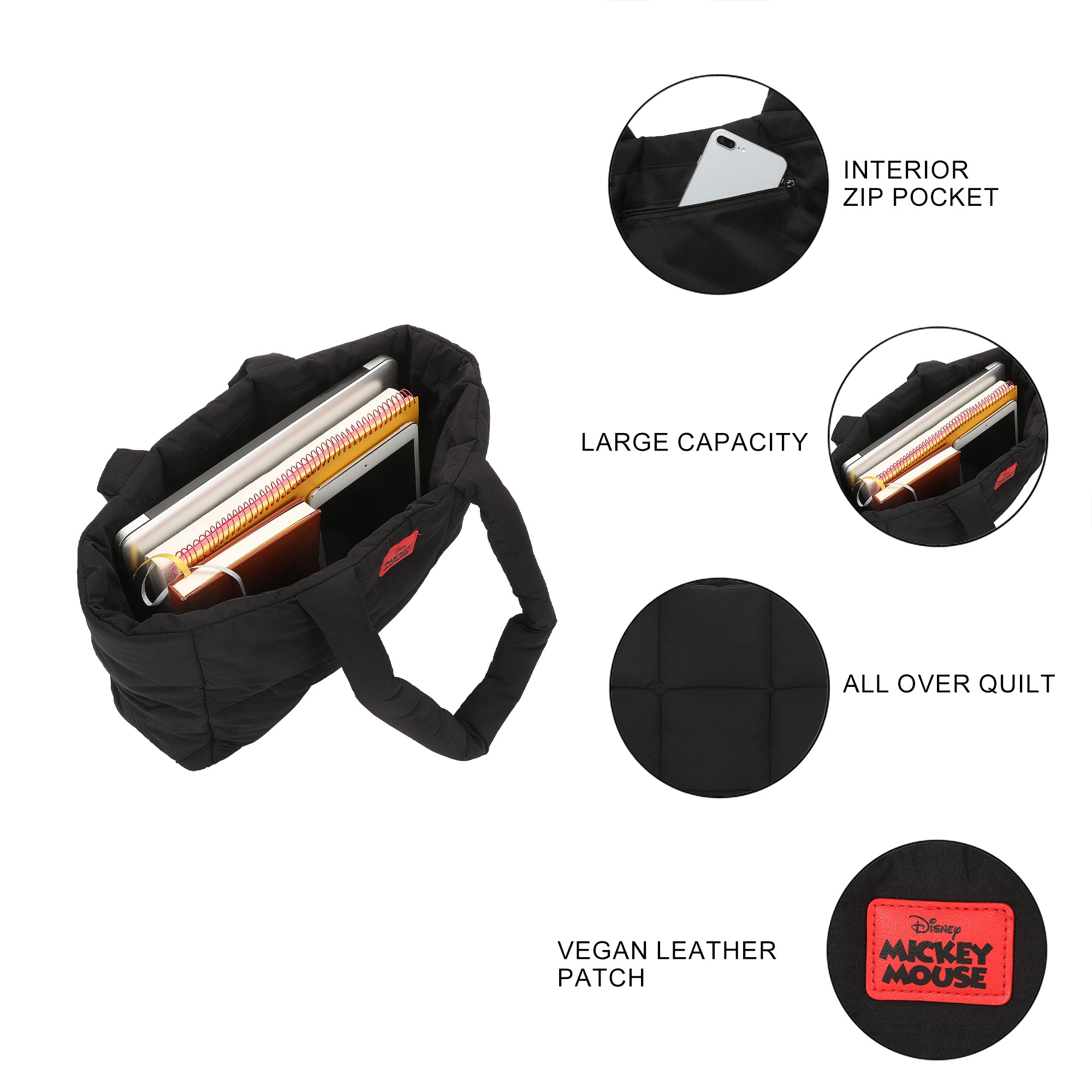 Mickey Mouse Quilted Puffer Tote Bag with Rubber and PU Badge