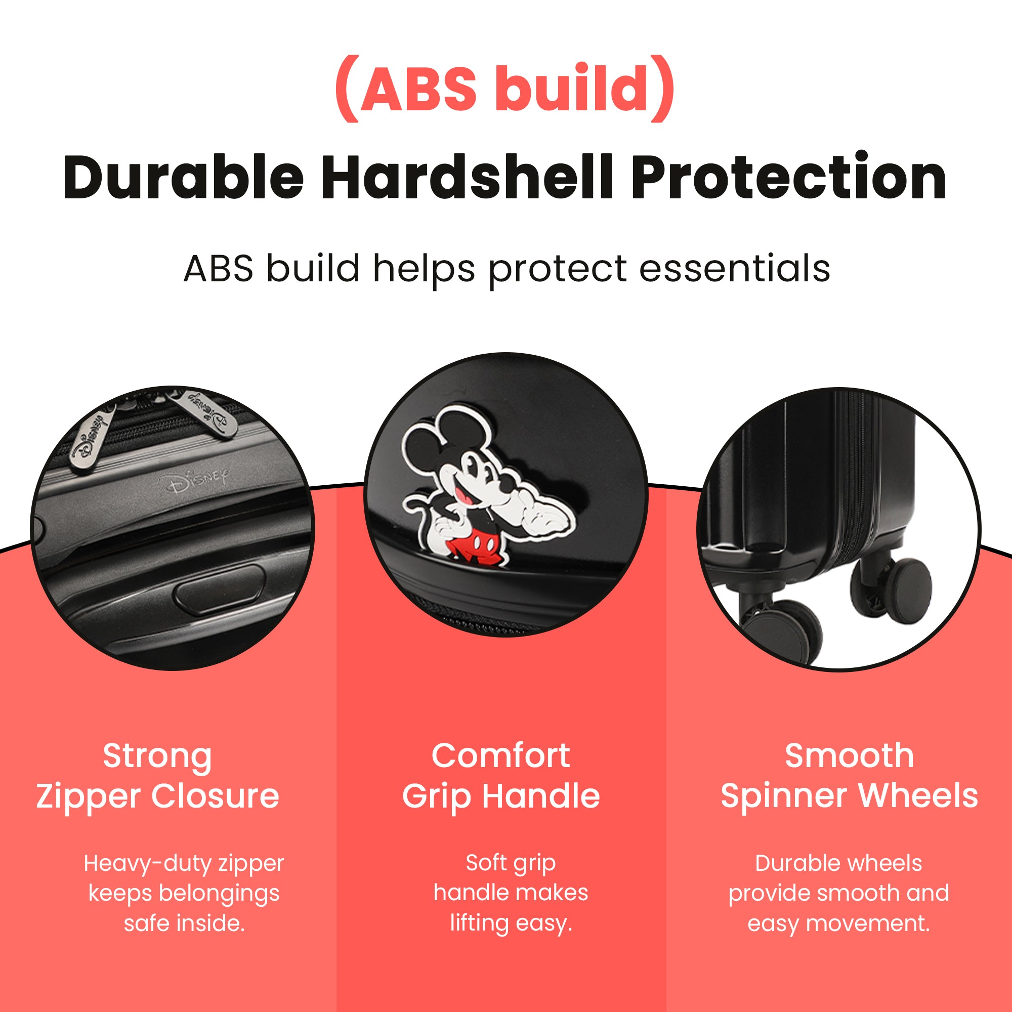 - Official Disney design: Features a fun Peeking Mickey graphic on a sleek hard shell exterior.