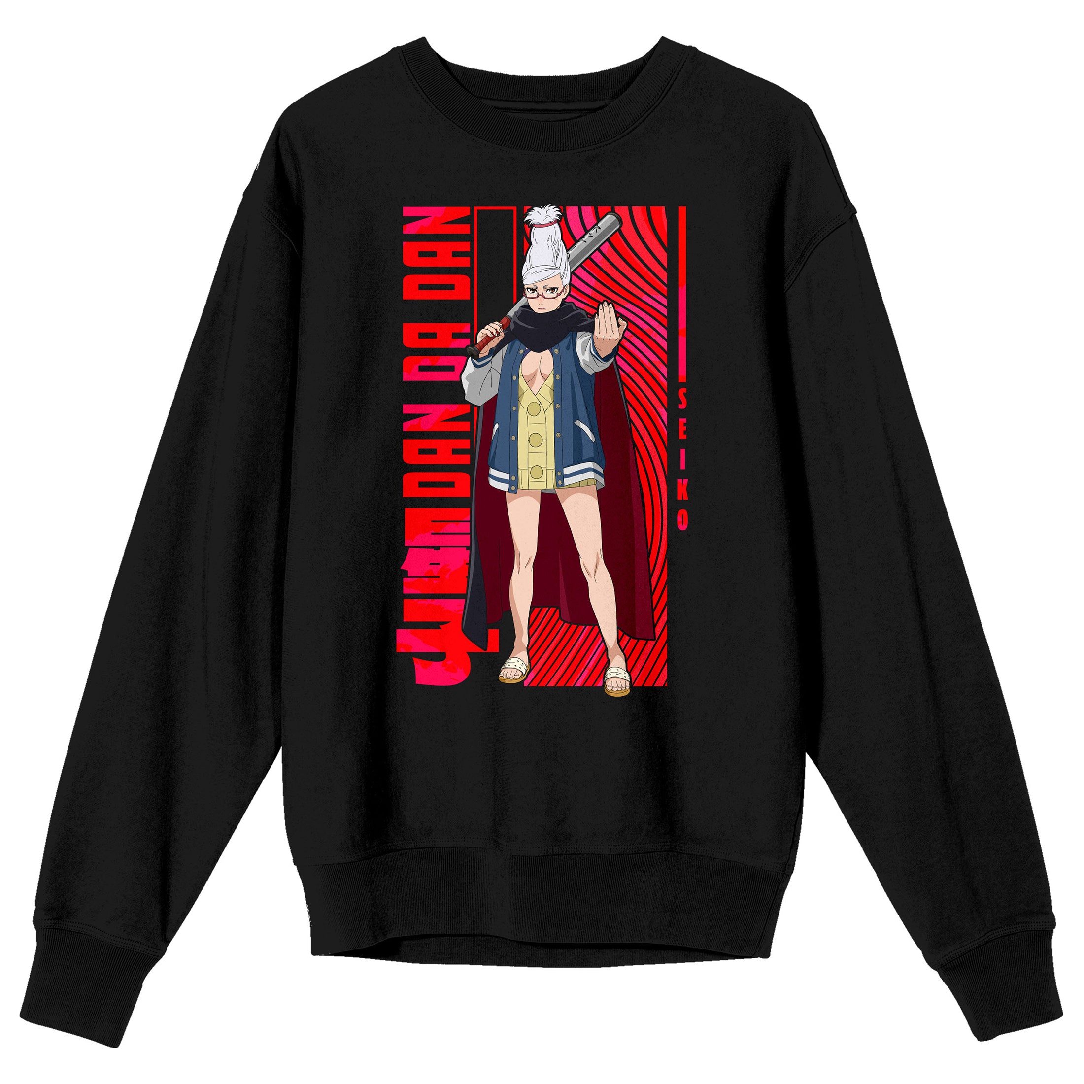 Dandadan - Seiko Ayase, Kanji text, Wavy red Stripes on Black Adult Crew Neck Sweatshirt