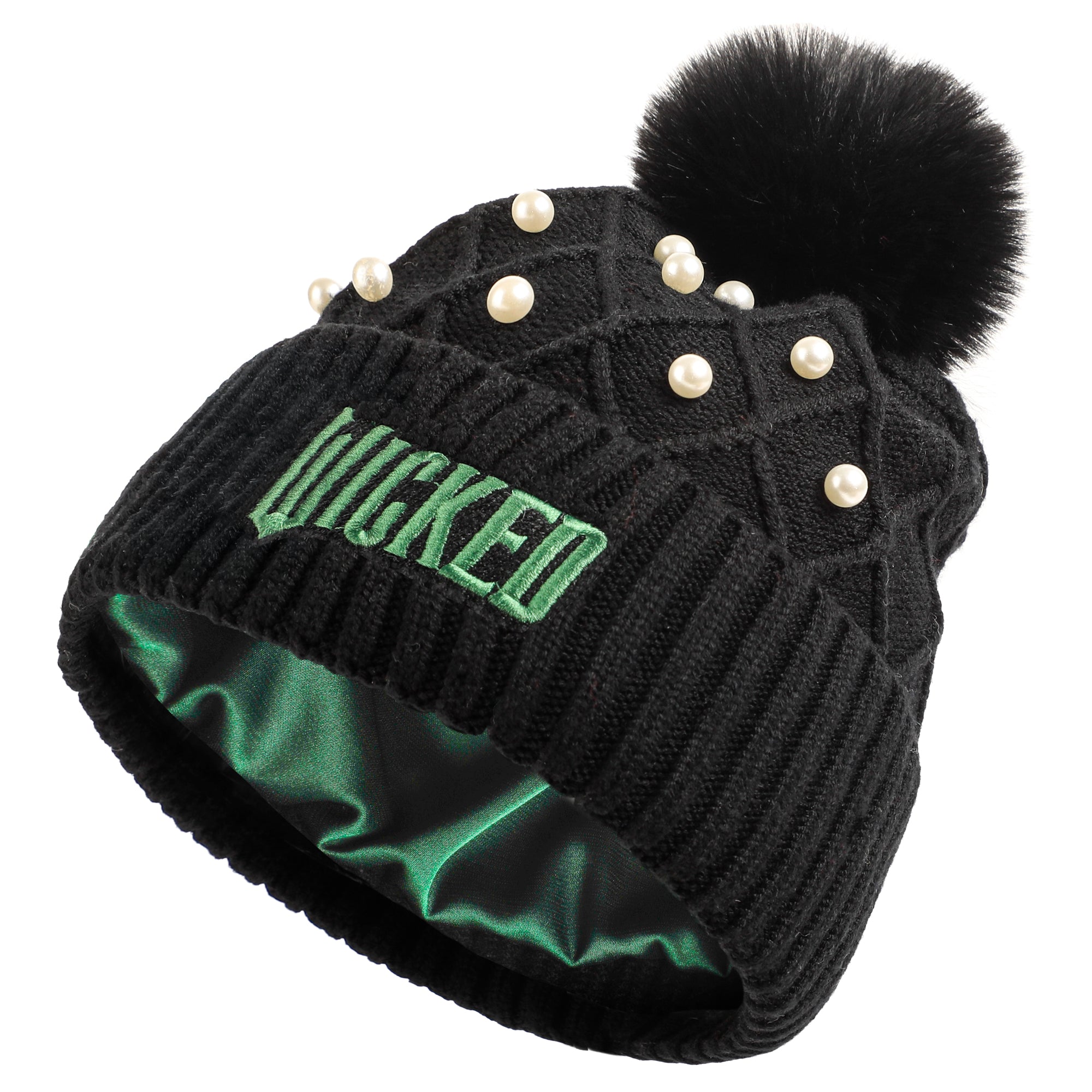 Wicked Logo & Pearl Appliques Black Cuff Beanie