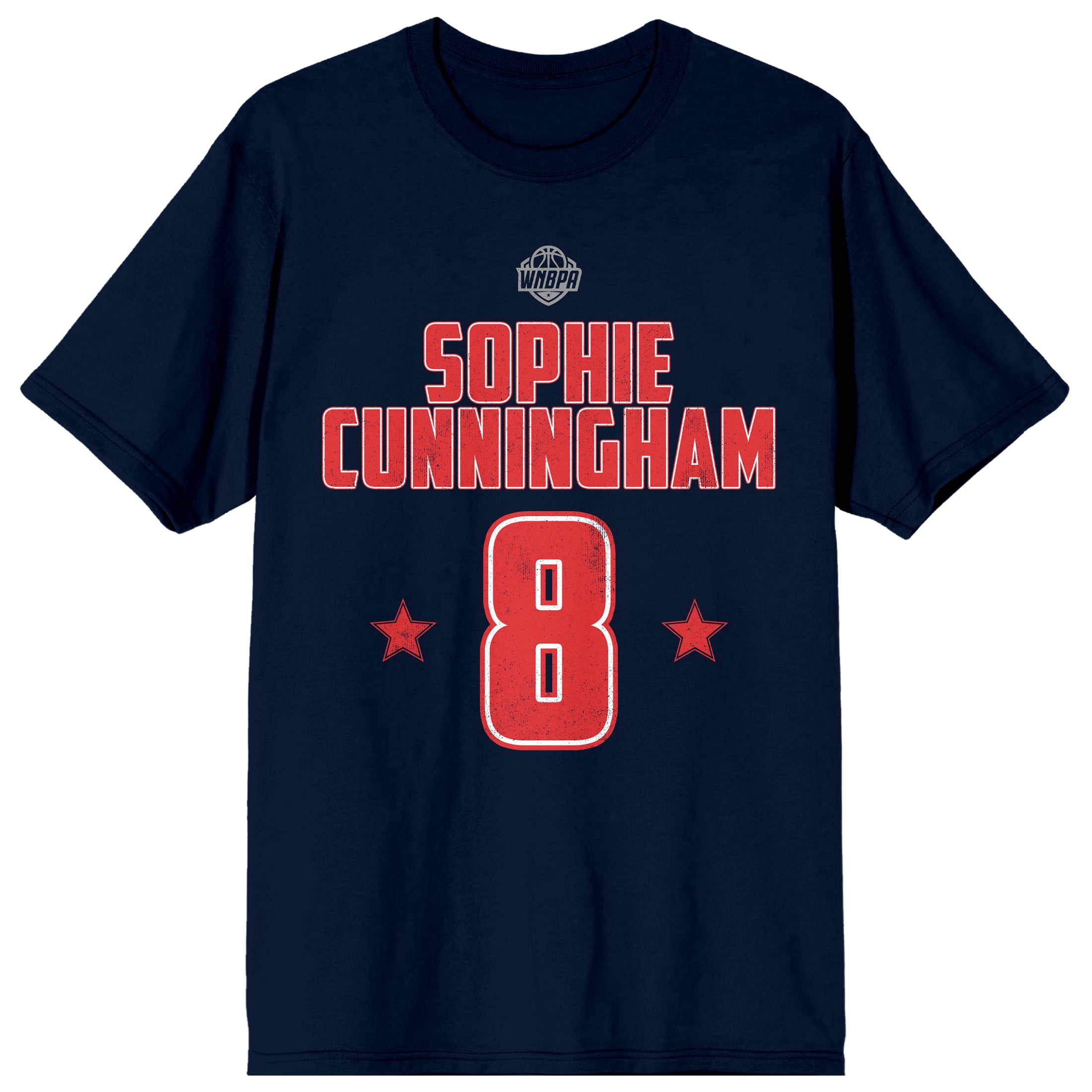 - Custom Design: Features a big, bold graphic of “Sophie Cunningham” alongside number “8”—an eye-catching and exciting image that has been professionally printed against a black background for long-lasting print quality