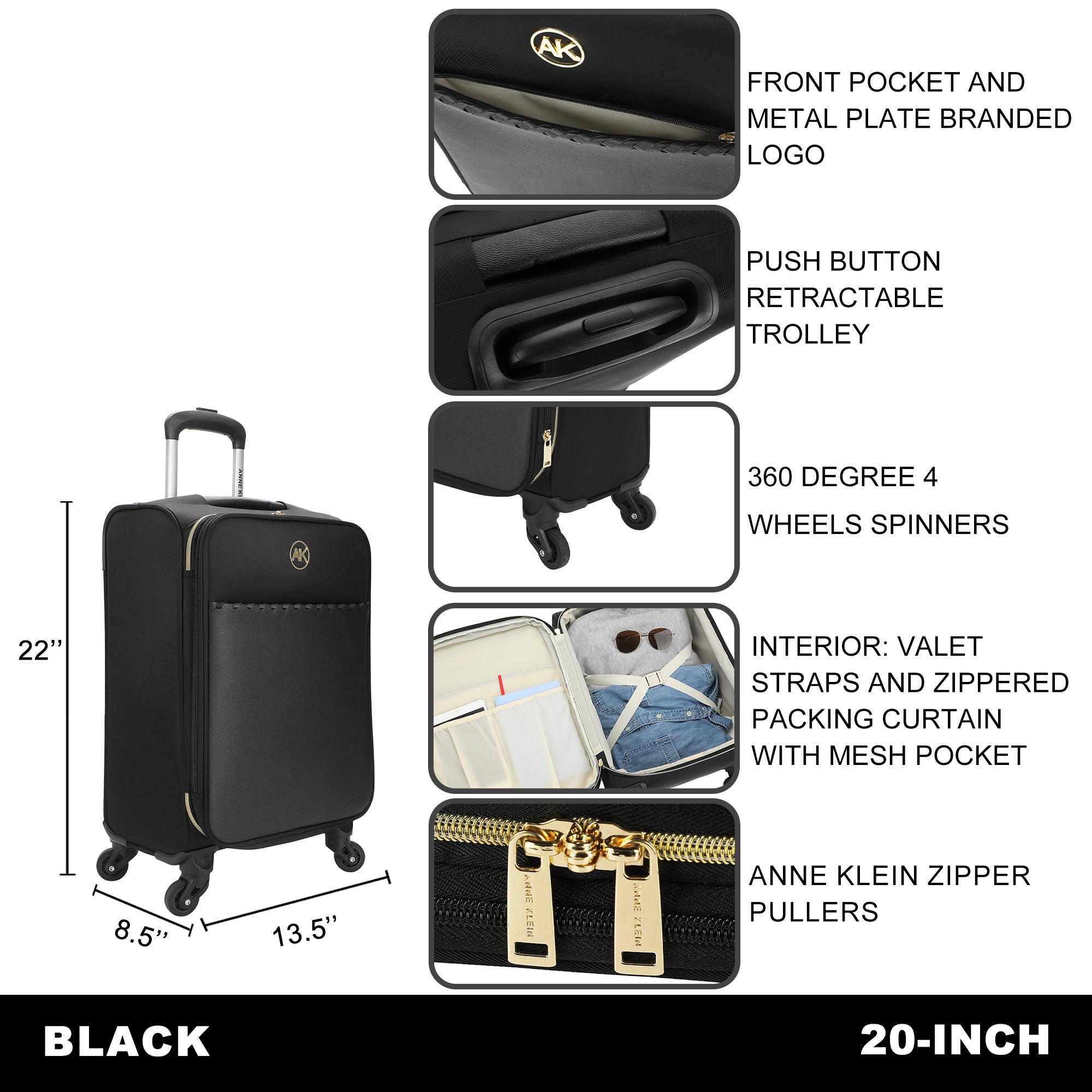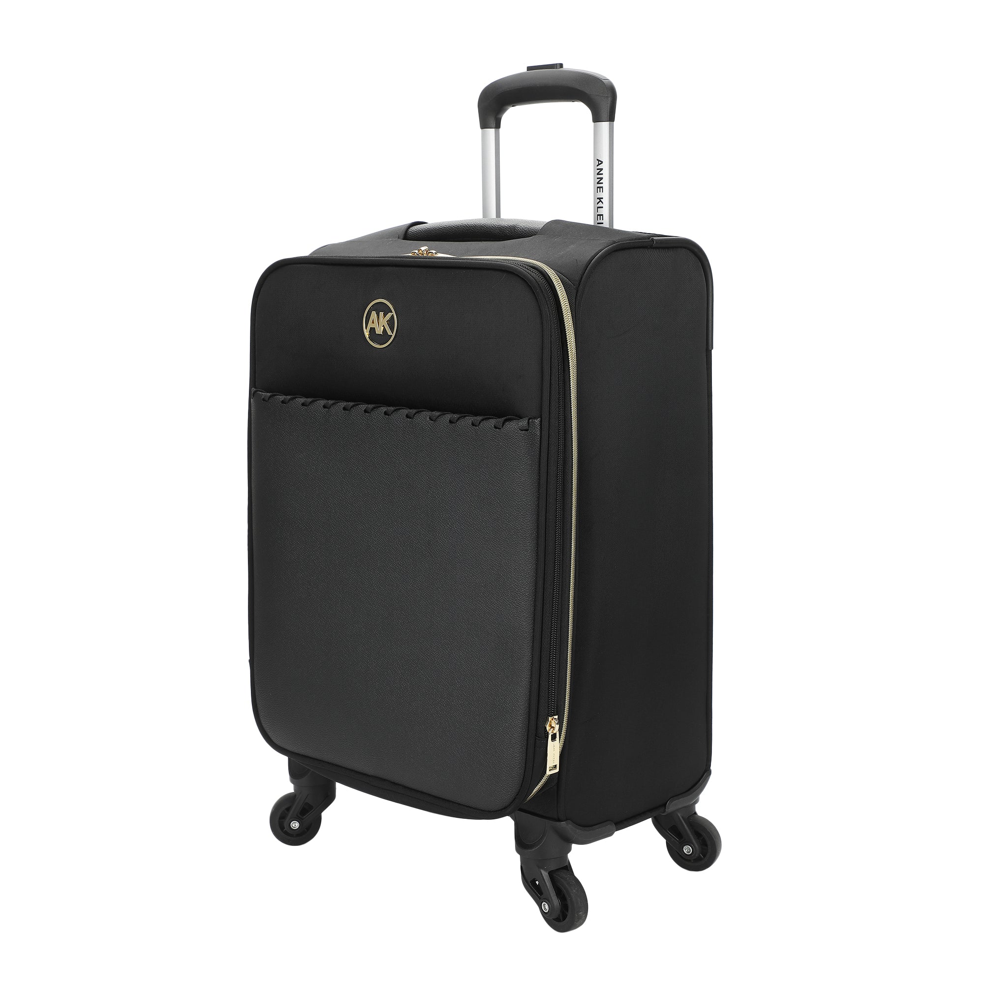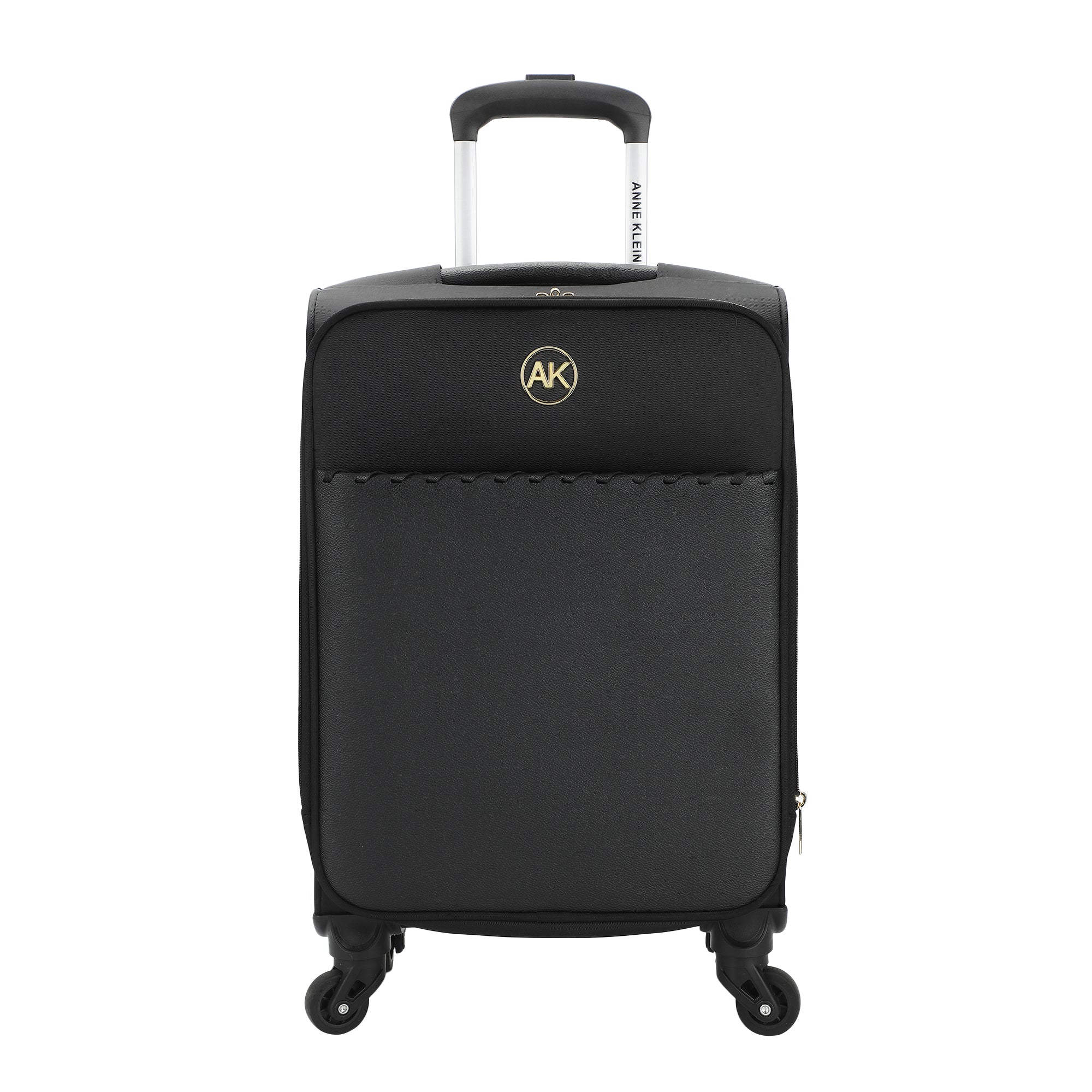 Anne Klein Black 20" Pebble PU Softside Whipstitch Adult Rolling Luggage