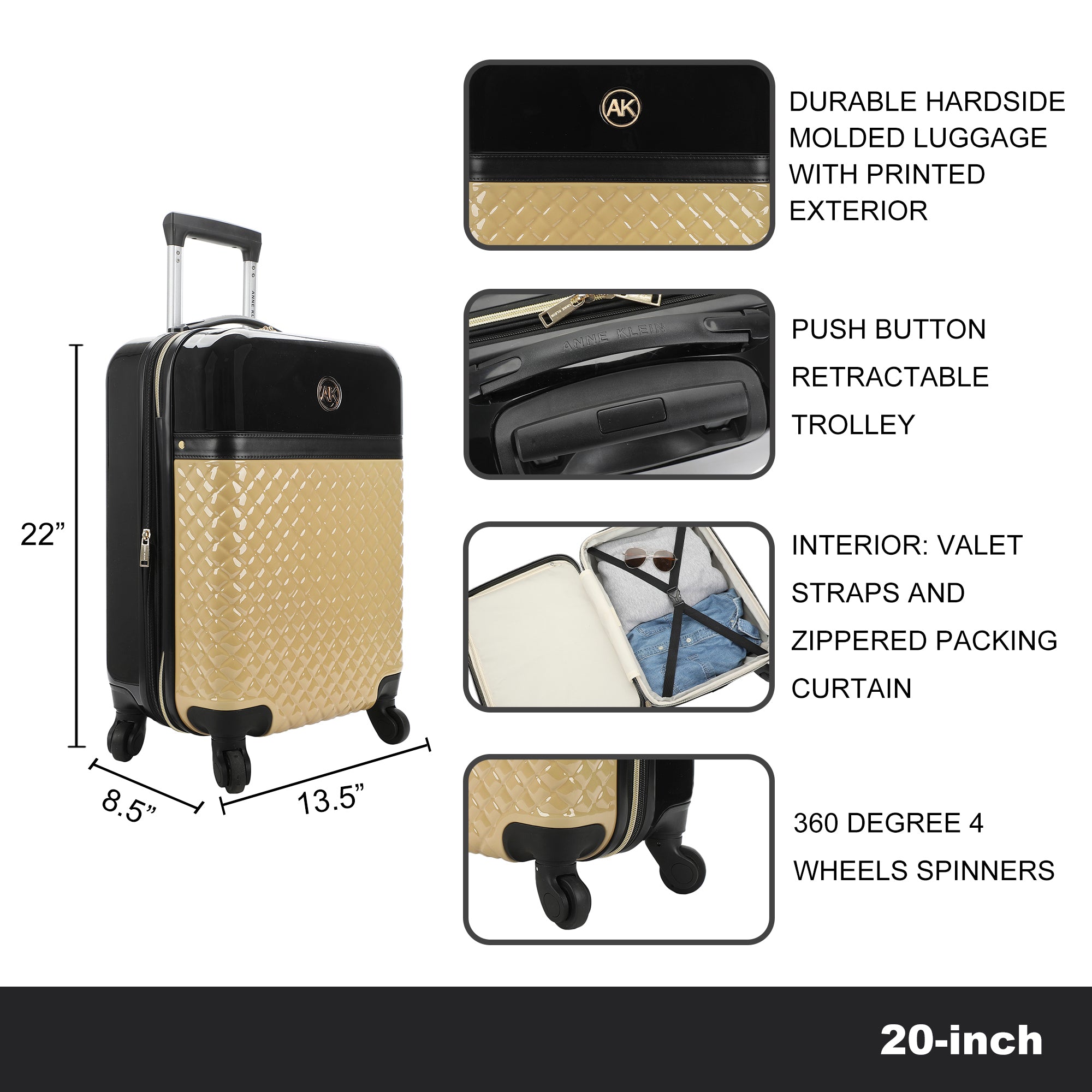 Anne Klein Molded 20" Metal Plate Logo Hardside Carry-On Printed Adult Hardside Fashion Rolling Luggage