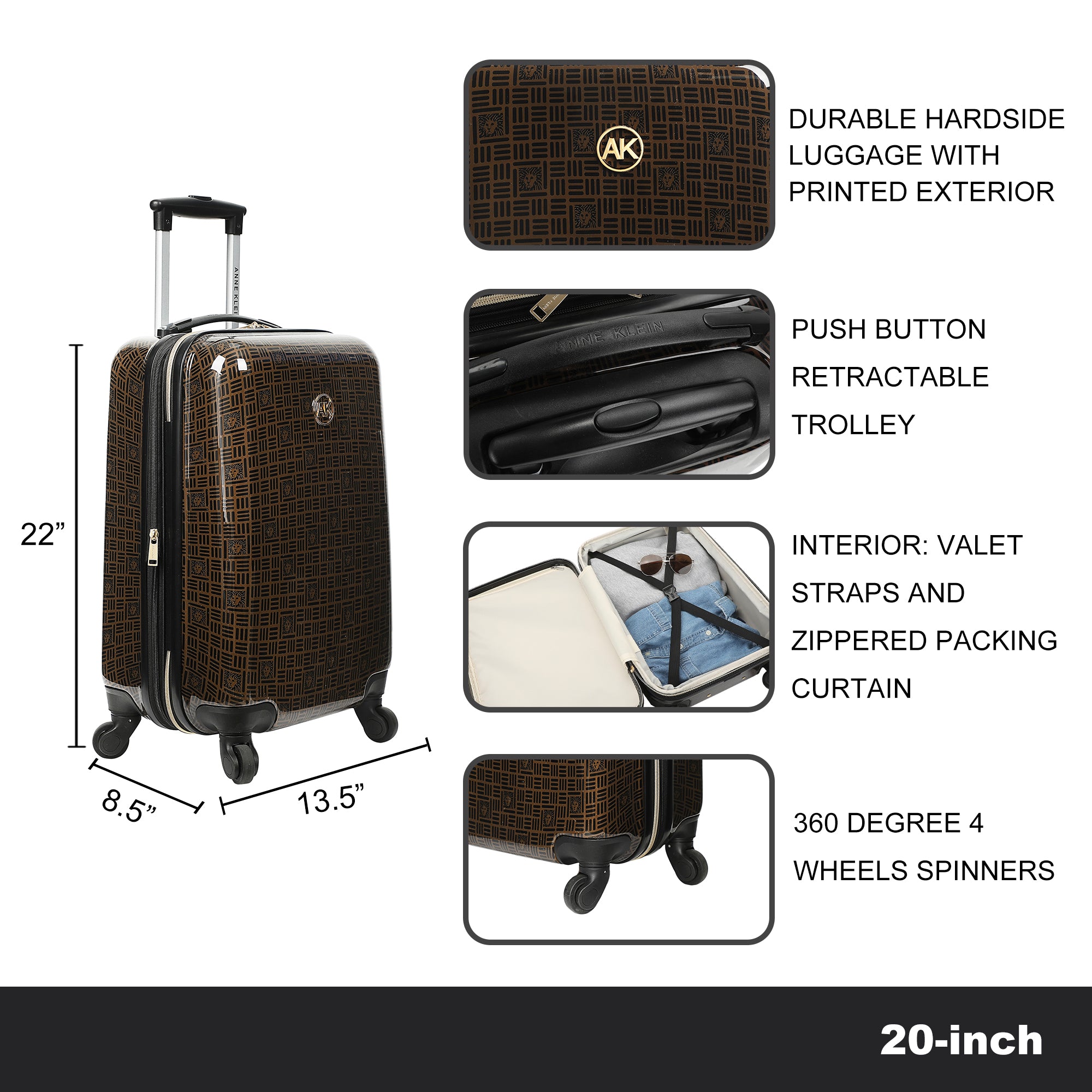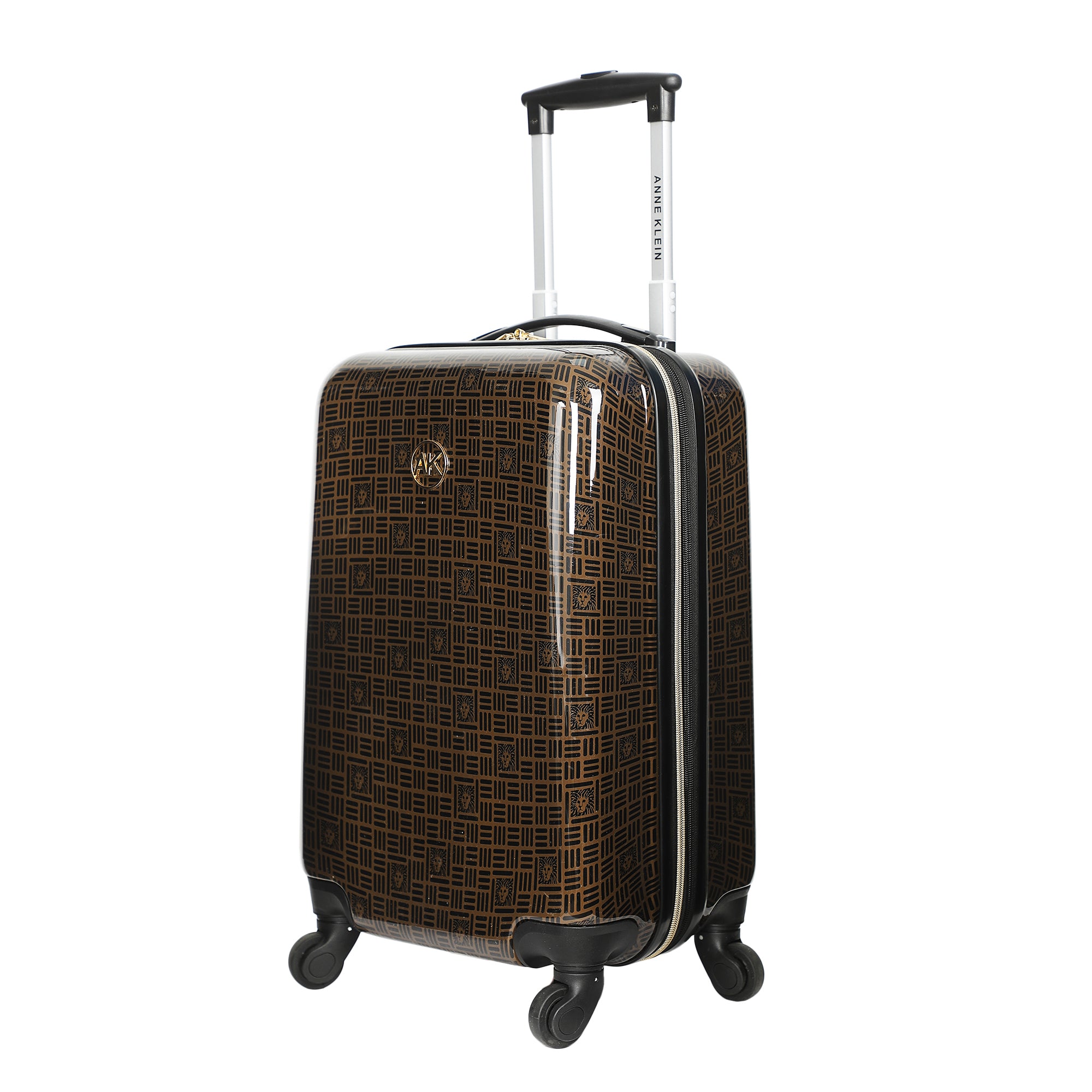Anne Klein Signature 20" Metal Plate Logo Hardside Carry-On Printed Adult Hardside Fashion Rolling Luggage
