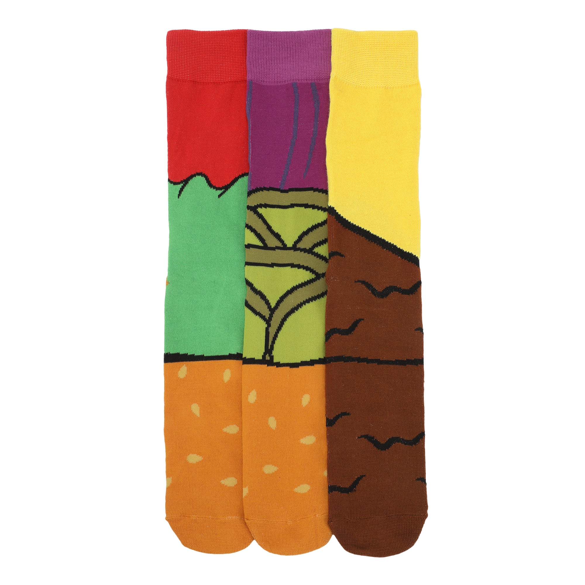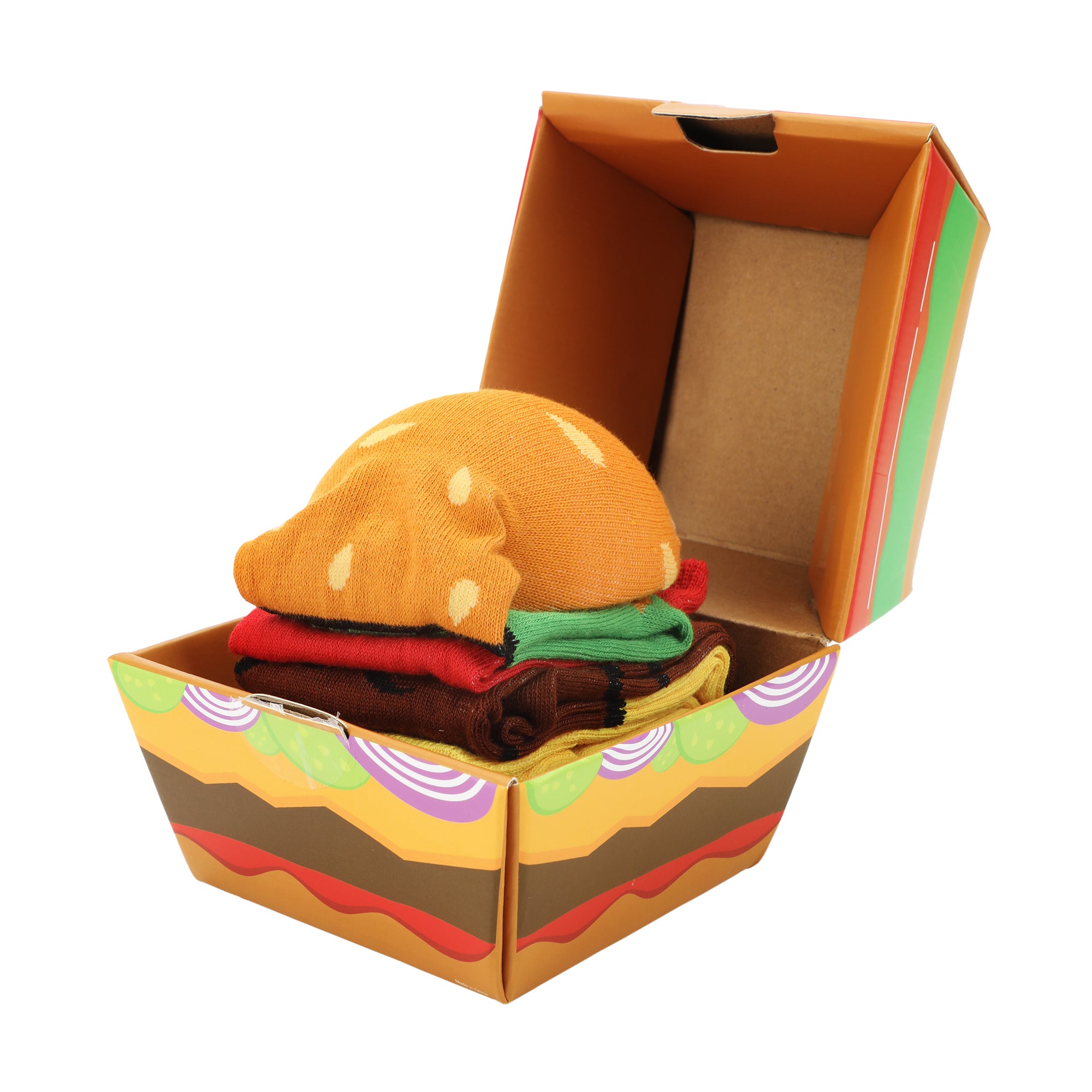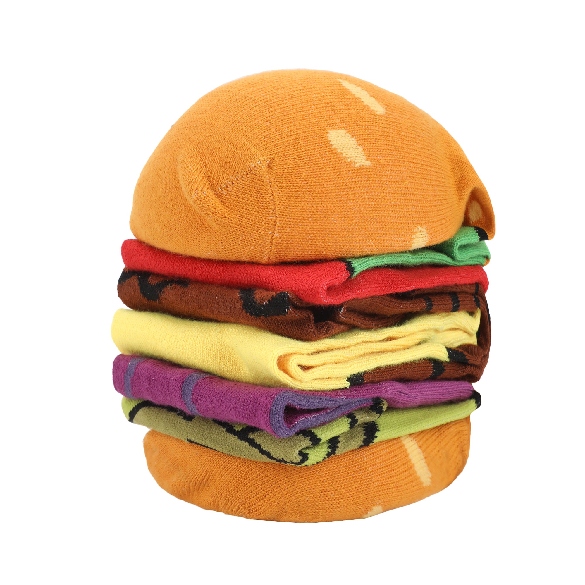 - FOOD-INSPIRED: Make a statement with these food-inspired casual crew socks, featuring the delectable elements of a cheeseburger. The vibrant design adds a touch of culinary flair to your everyday style.