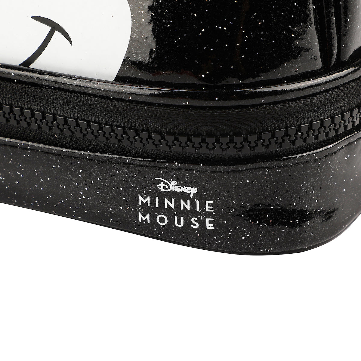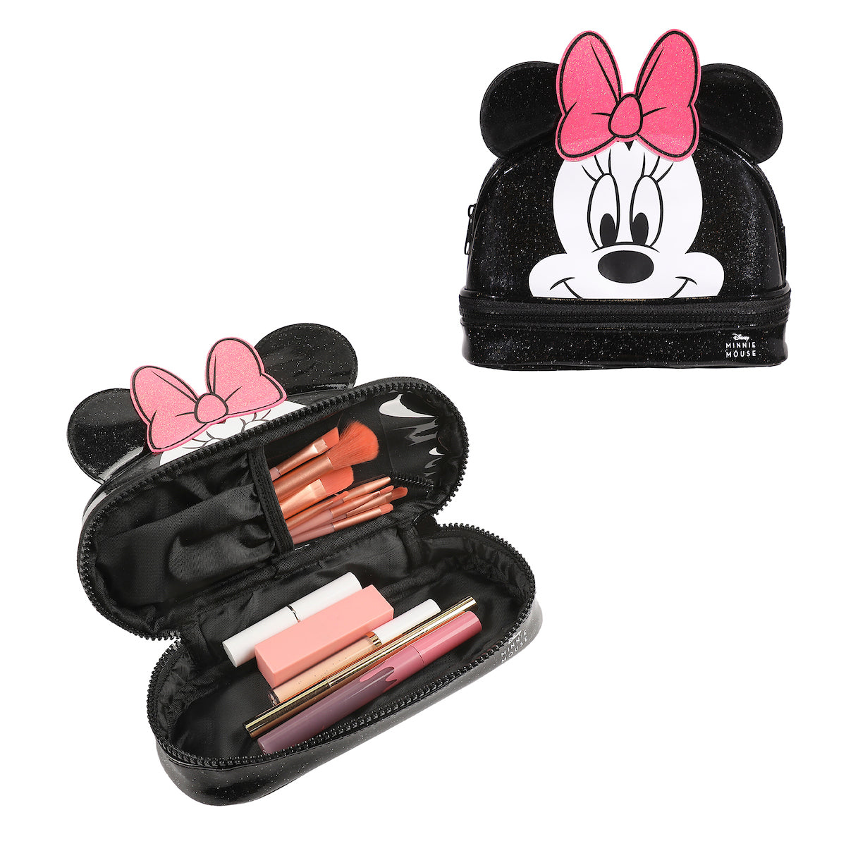 Disney Minnie Mouse Character Face Black Glitter 6" Cosmetic Pouch With 3D Ears