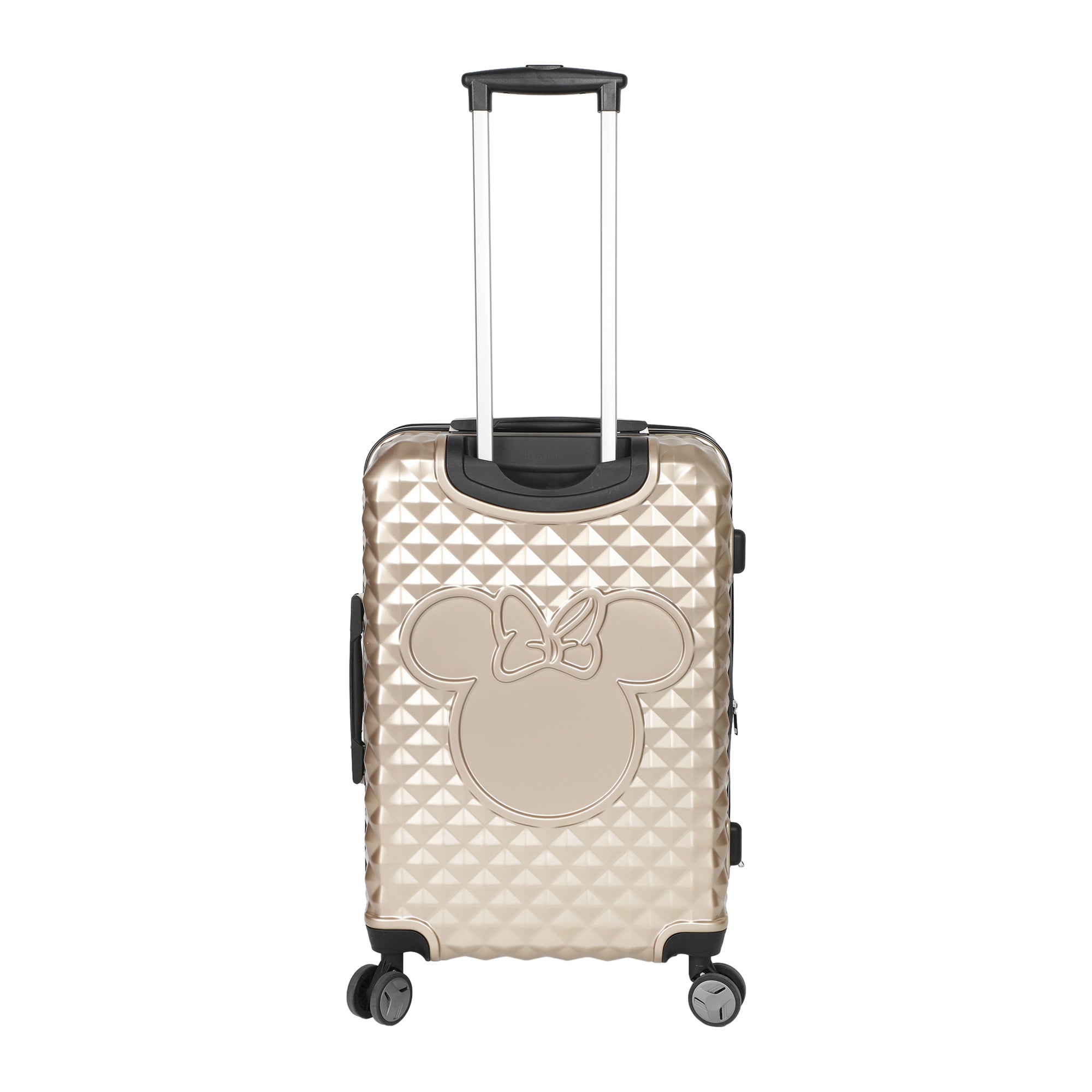- CUSTOM DESIGN: Make a stylish statement with this gold Disney carry-on luggage set, featuring a dazzling gold image of Minnie Mouse ears. Glam meets travel in this officially licensed and custom-designed ensemble. 20" Dimension (Case-19.5"H x 13.75"W x 8"D, Overall-21"H x 13.75"W x 8"D), 24" Dimension (Case-23.5"H x 16"W x 9"D, Overall-25"H x 16"W x 9"D), 28" Dimension (Case-27.5"H x 18.5"W x 10.5"D, Overall-29"H x 18.5"W x 10.5"D).