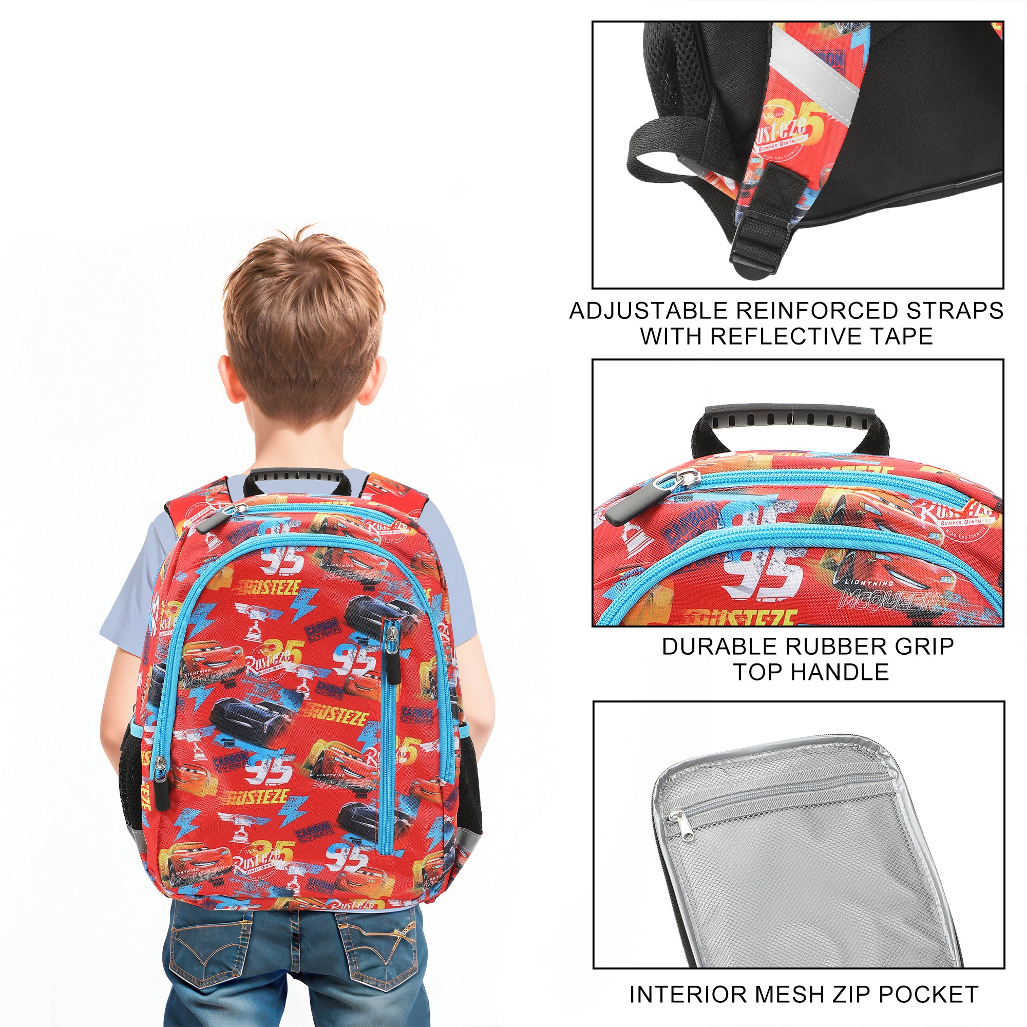 Disney Pixar Cars Characters All-Over Print 14" Toddler Backpack & Lunch Kit Value Set for Boys