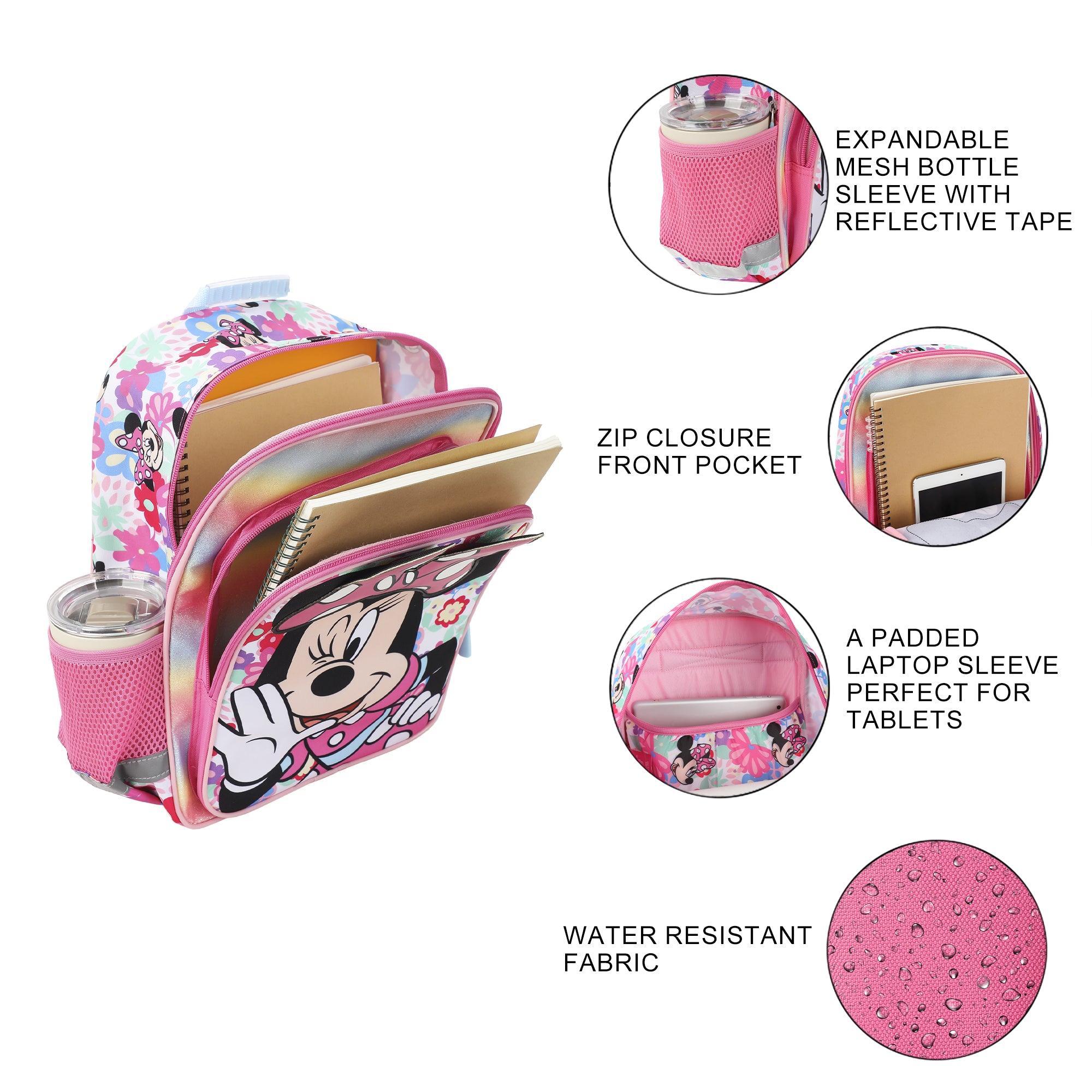 - Custom Design: This 16-inch backpack has been custom-designed with a bright, colorful graphic of Minnie Mouse, making it the perfect school, work, or travel accessory for little Disney fans!
