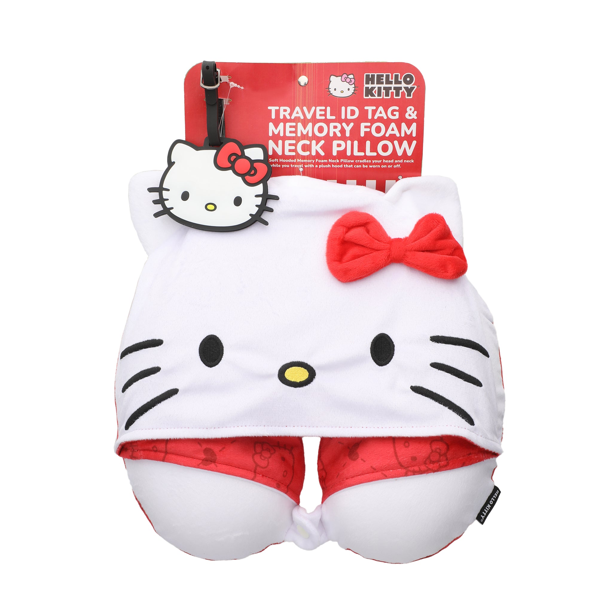 Hello Kitty Character Face 2-Pack Hooded Neck Pillow & Luggage Tag Set
