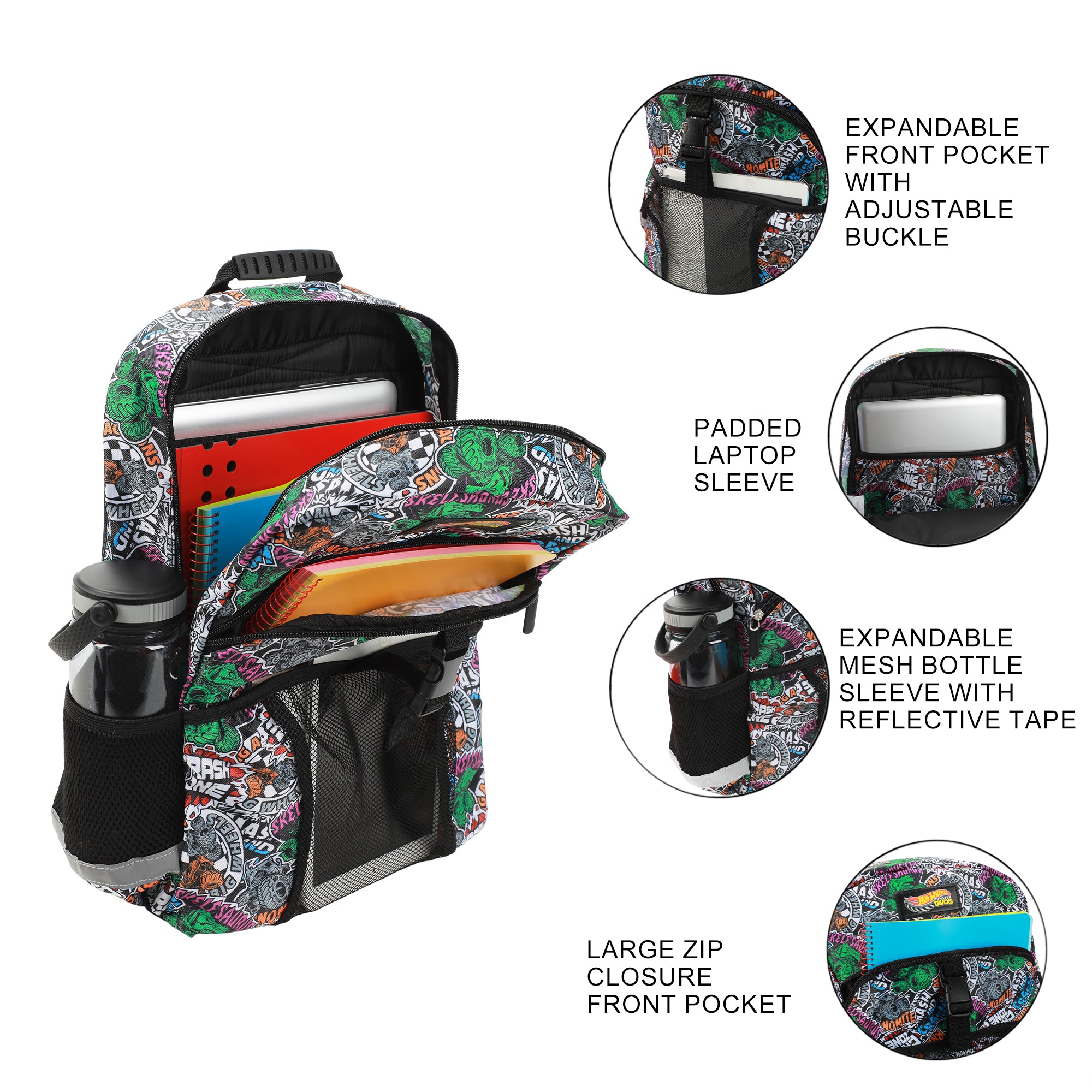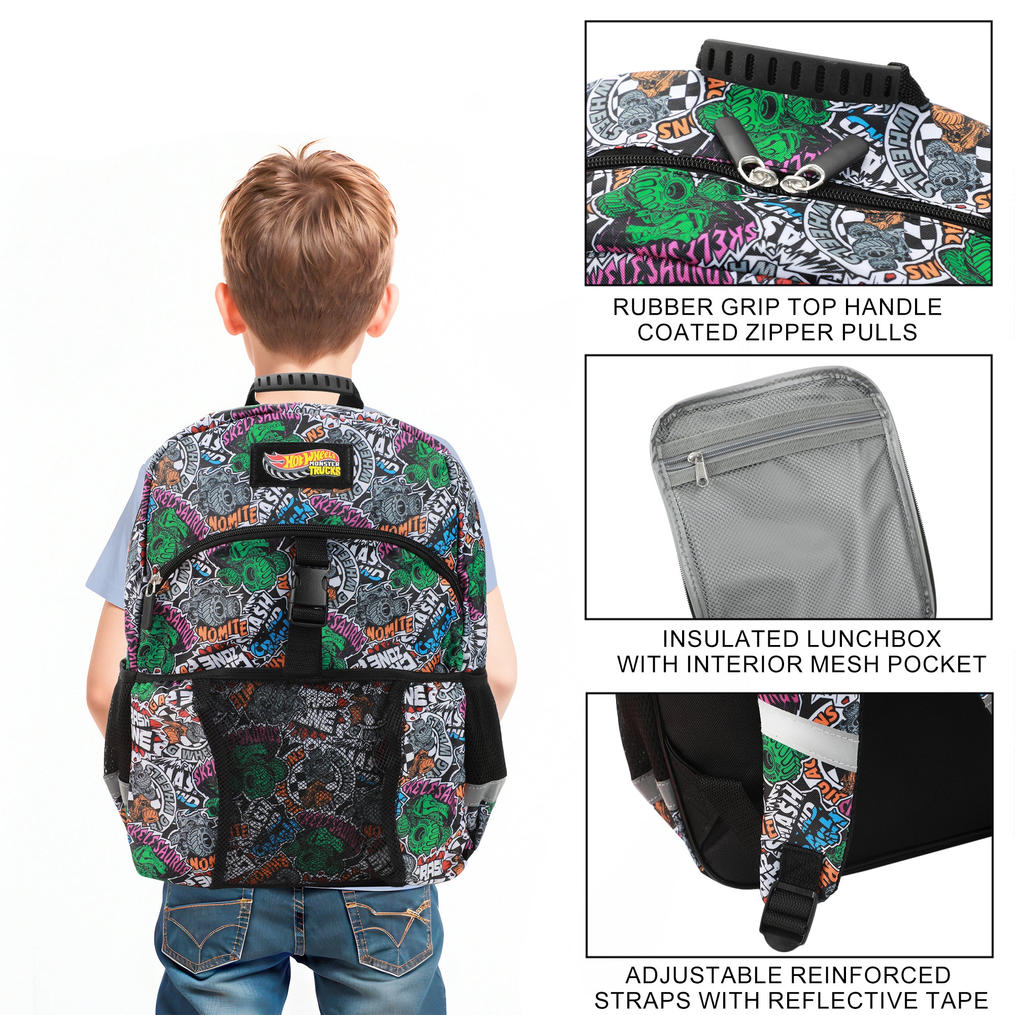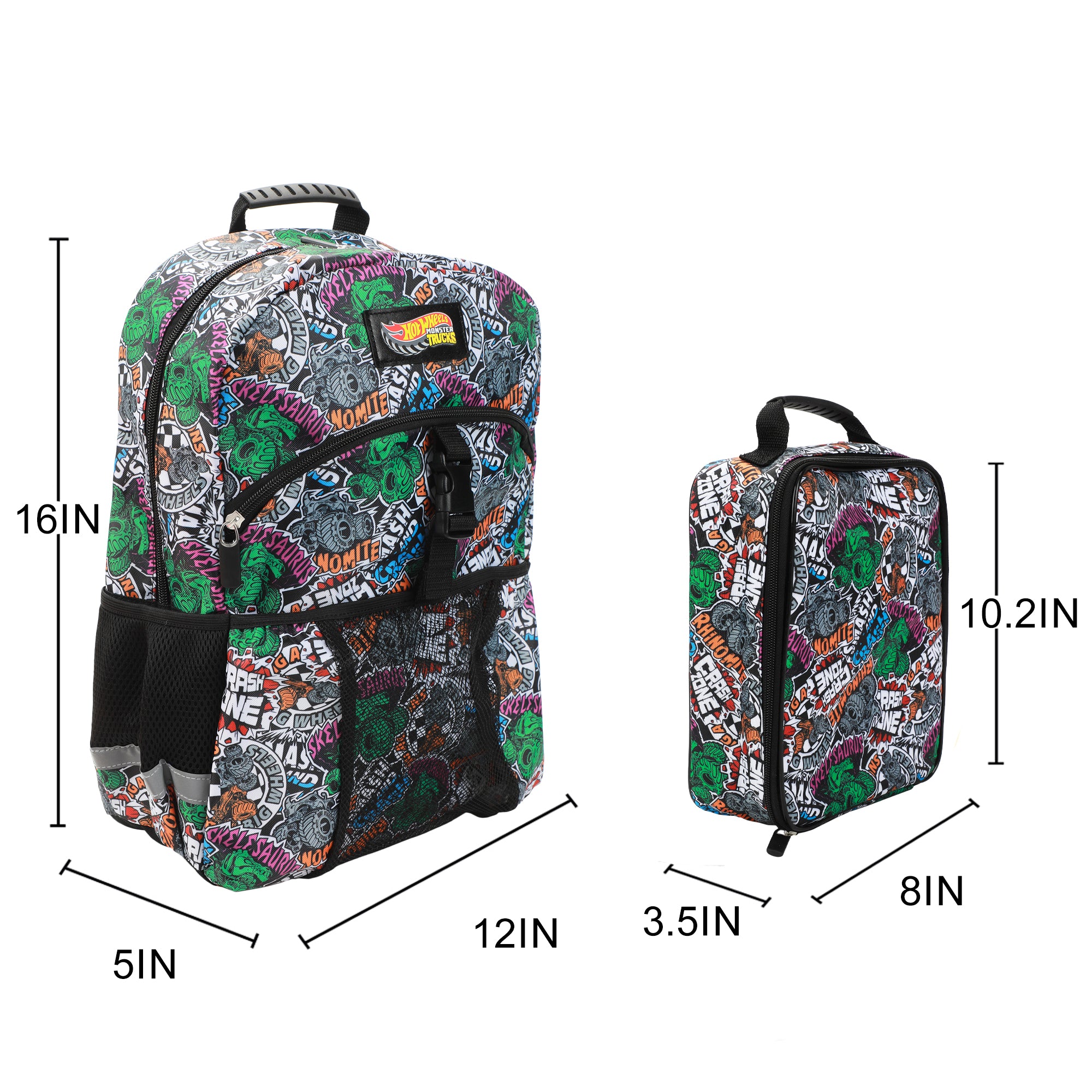 Hot Wheels Cars & Titles All-Over Print 16" Backpack & Lunch Kit Set