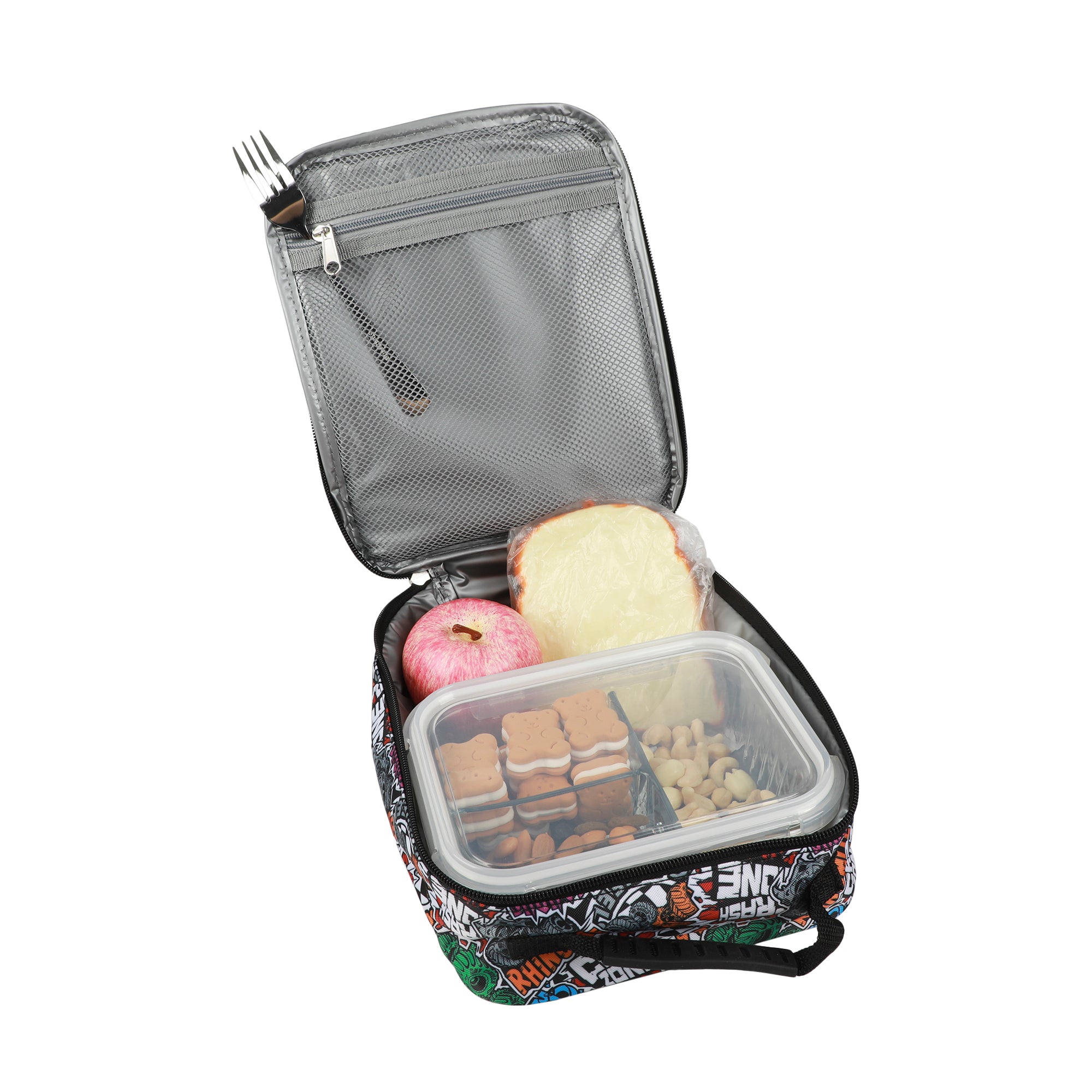 - Lunch Kit: Includes an insulated lunch kit with an interior zip pocket to keep food cold and organized
