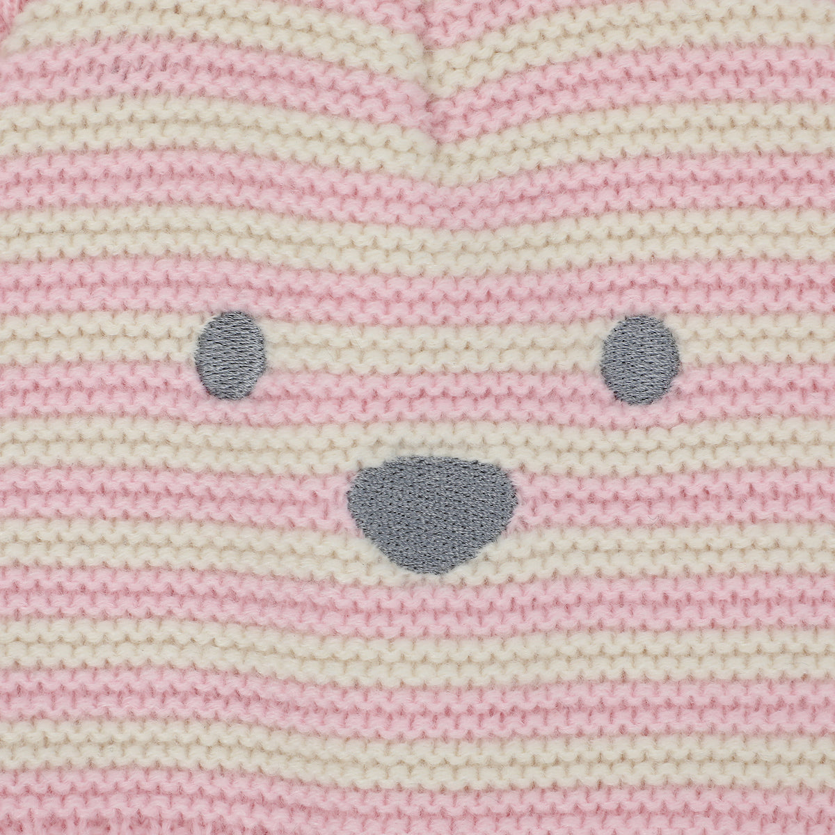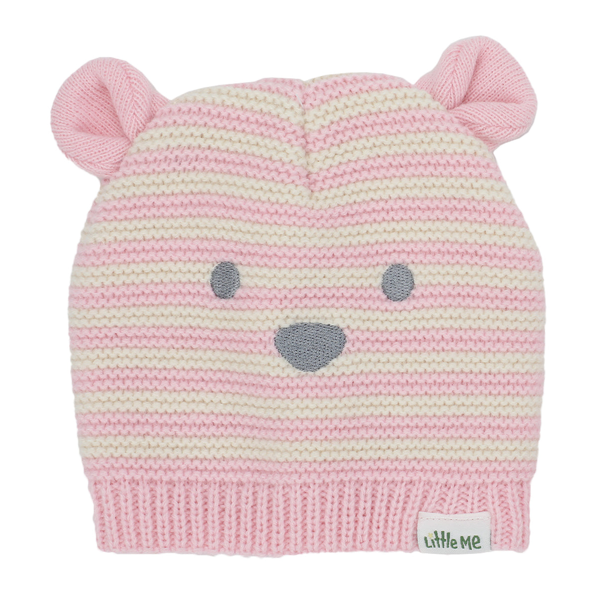 Little Me Cute Pink Striped Bear Newborn/Infant Beanie and Mittens Set