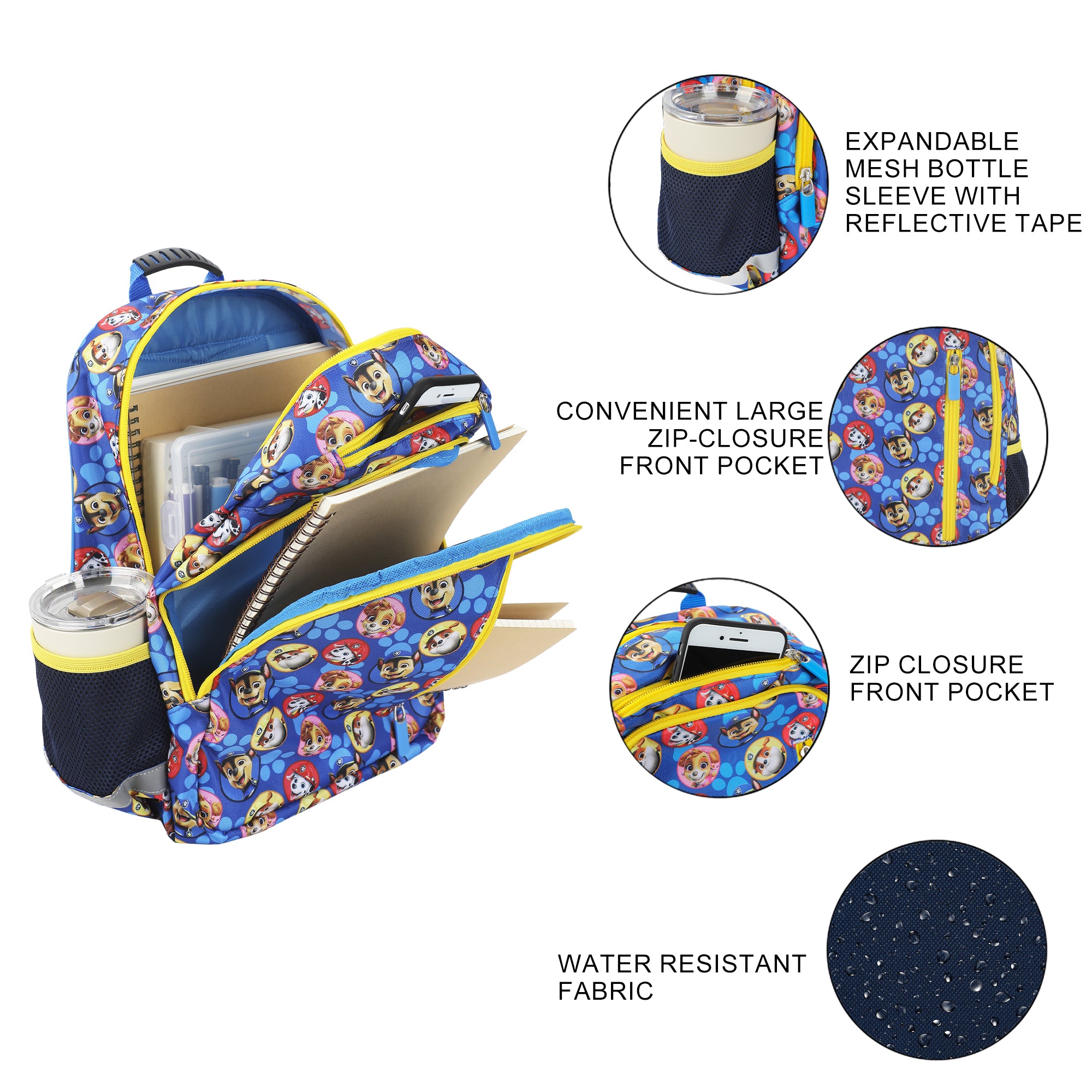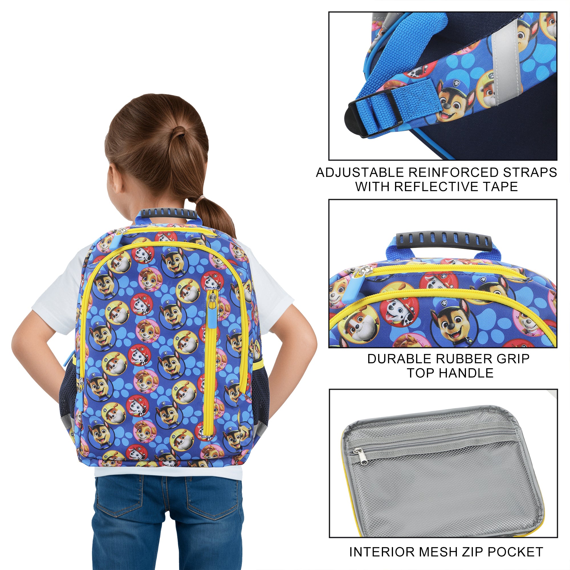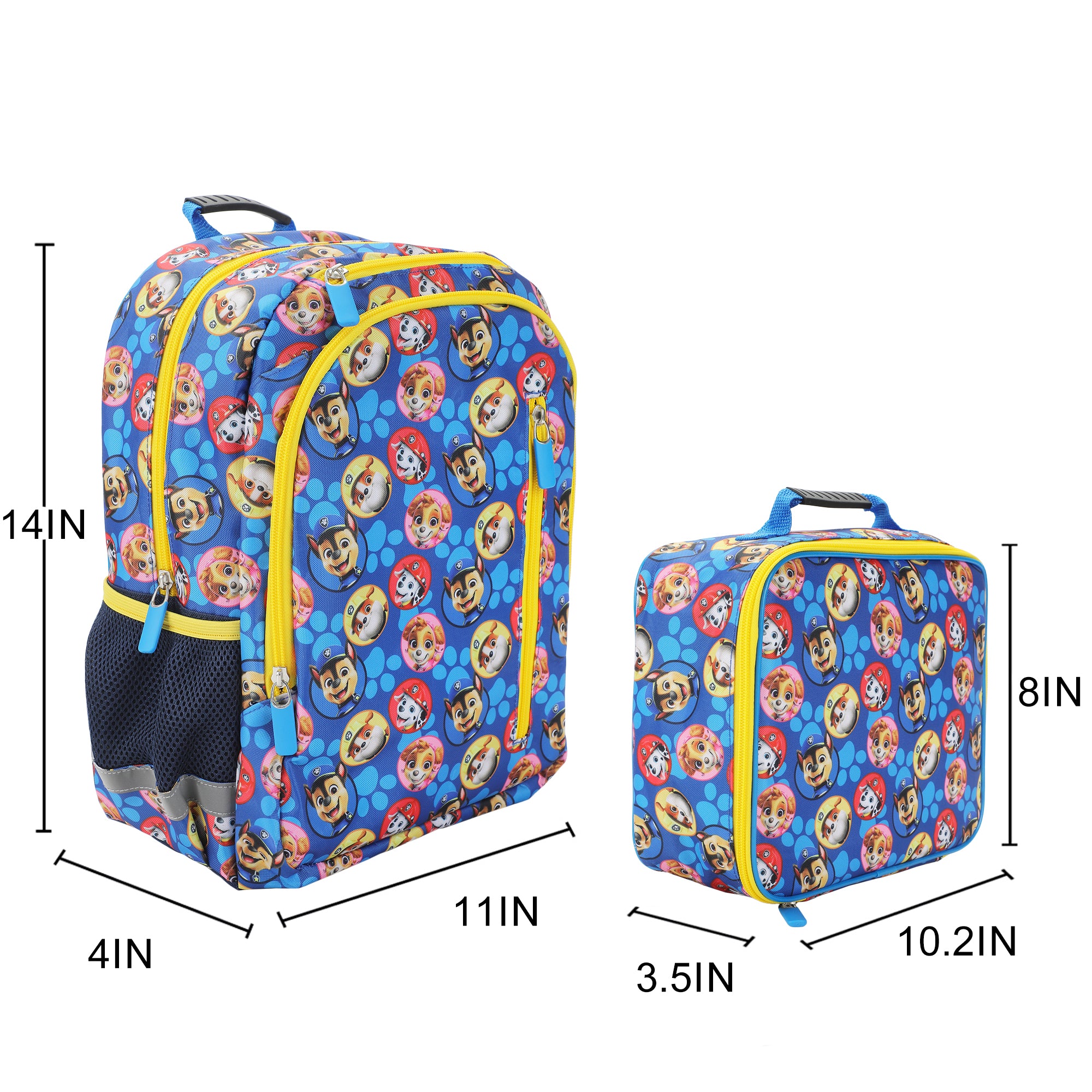- Combo Set: This 2-piece set includes both a backpack and lunchbox, each boasting a bright, colorful, all-over print of Marshall, Chase, and other favorite Paw Patrol characters!