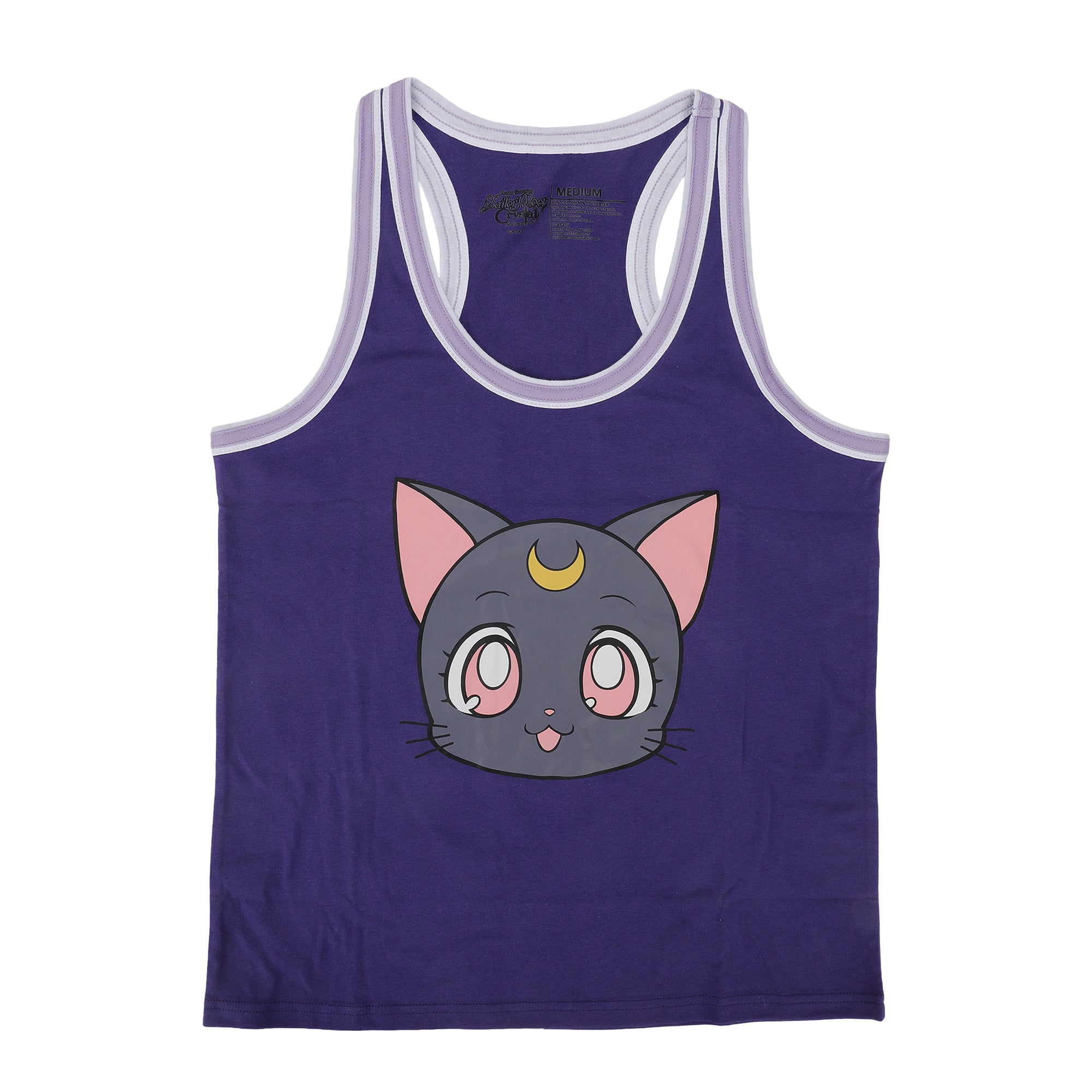 - 2-Piece Set: A must-have for Sailor Moon fans, this two-piece sleepwear set includes a racerback tank top with a big, colorful graphic of Luna the cat, and dolphin shorts featuring an all-over Luna print. Wear the pieces together for a dreamy, coordinated look.