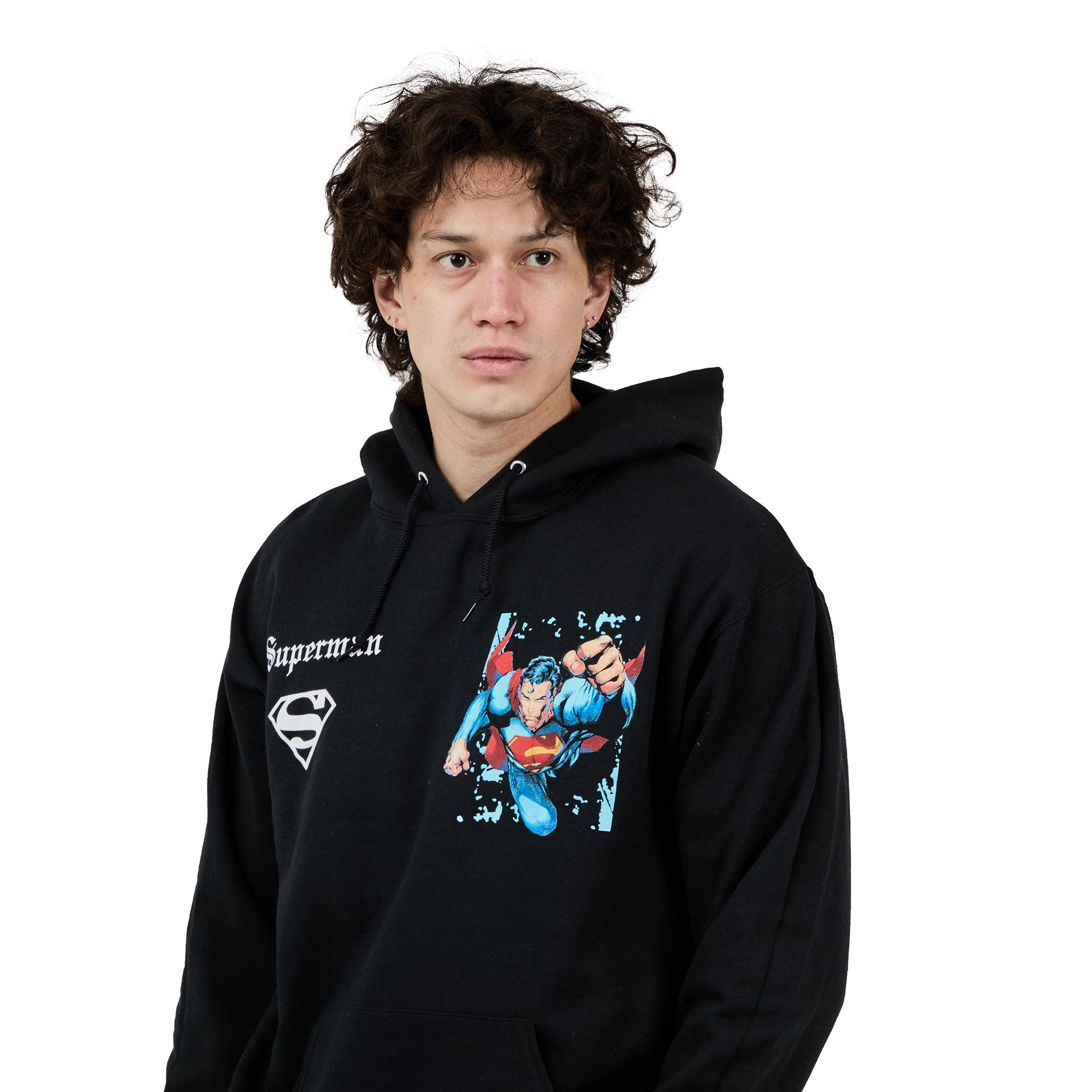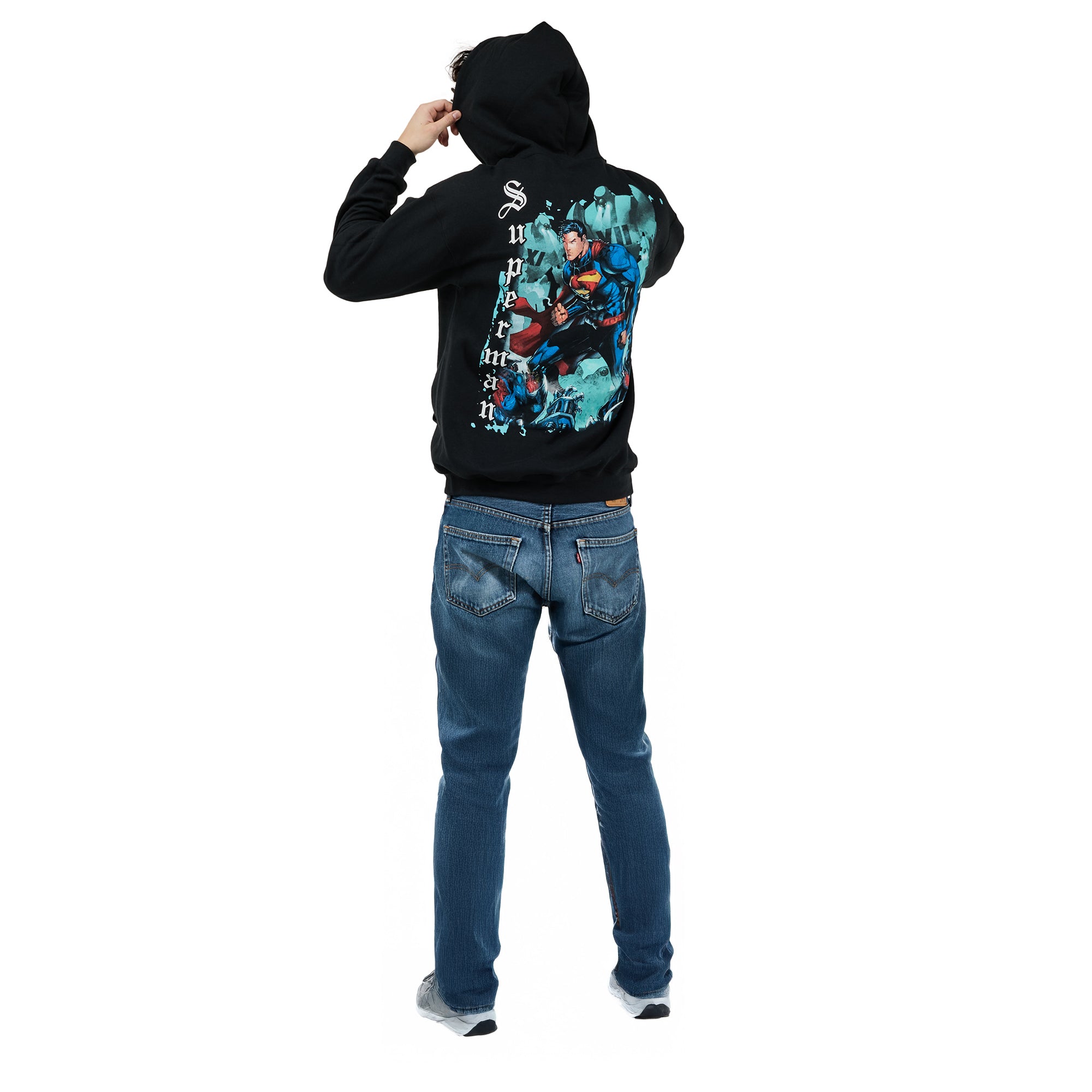 Superman Back Print Oversized Graphic Adult Black Long Sleeve Hoodie