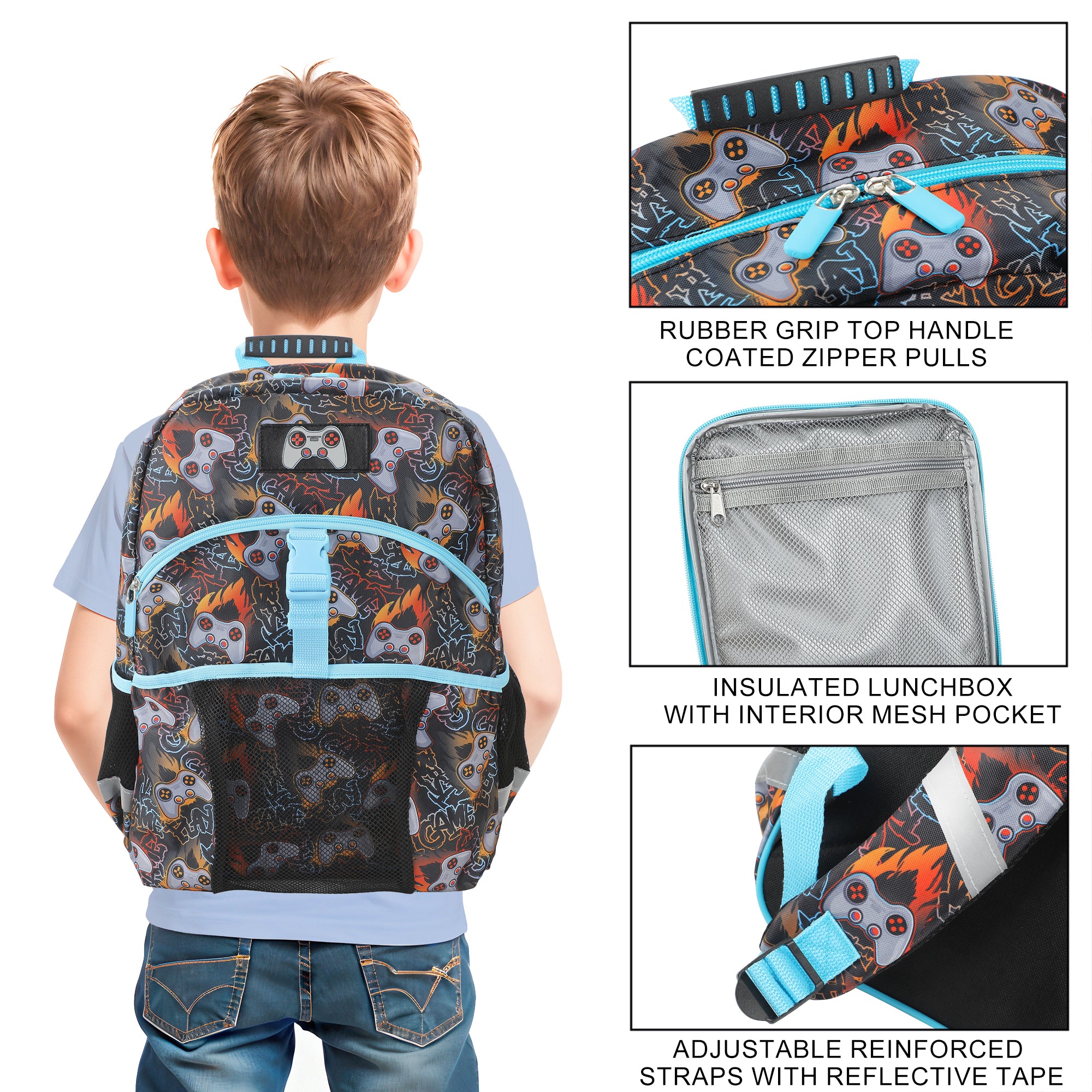 Video Game Controller All-Over Print 16" Premium Backpack & Lunch Kit Set for boys