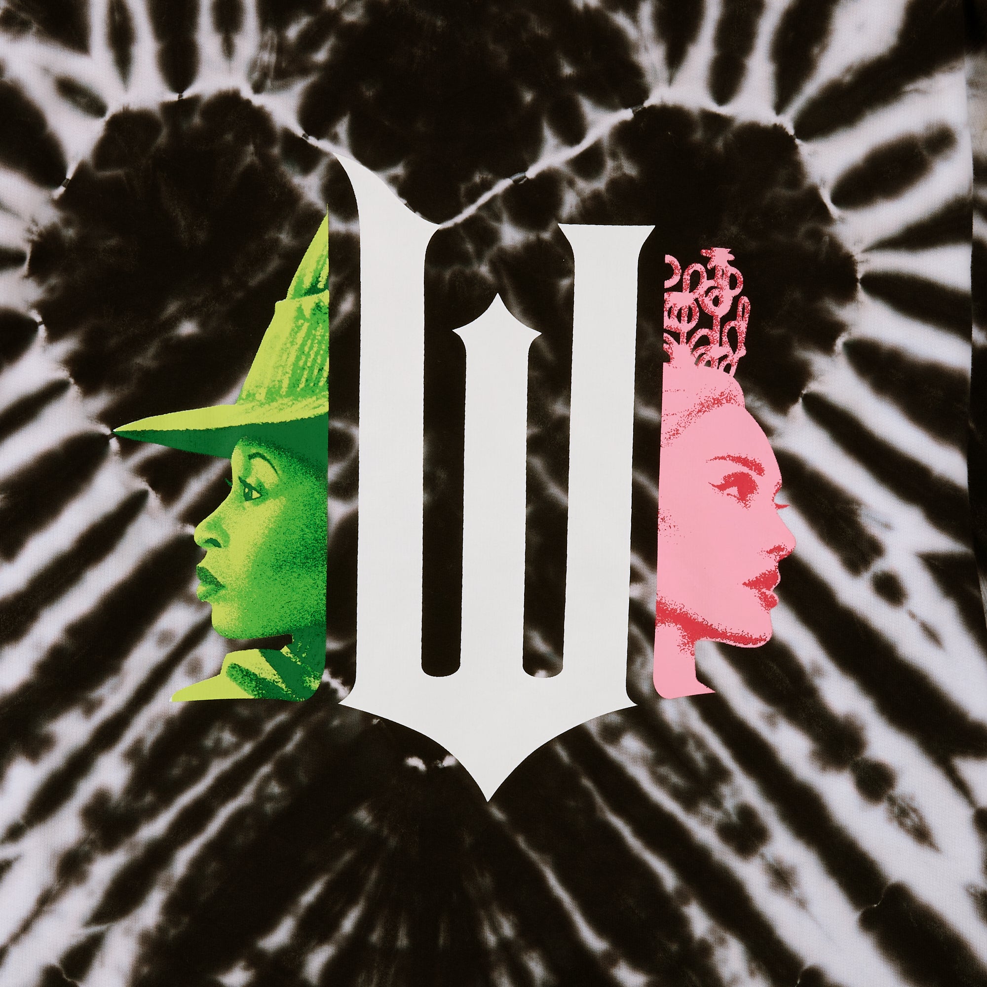 - Custom Design: Displays Elphaba and Glinda in green and pink beside the W logo with a heart-shaped tie-dye pattern for a bold, magical look